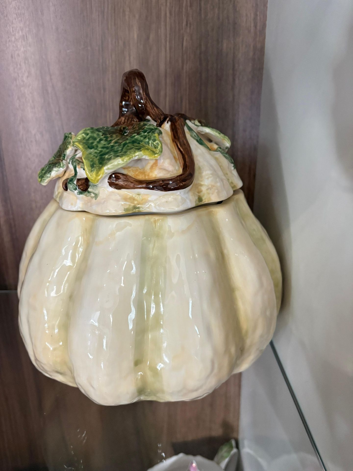 Ceramic pumpkin décor with lid in great condition. Perfect for fall or seasonal decorating. Clean and sturdy