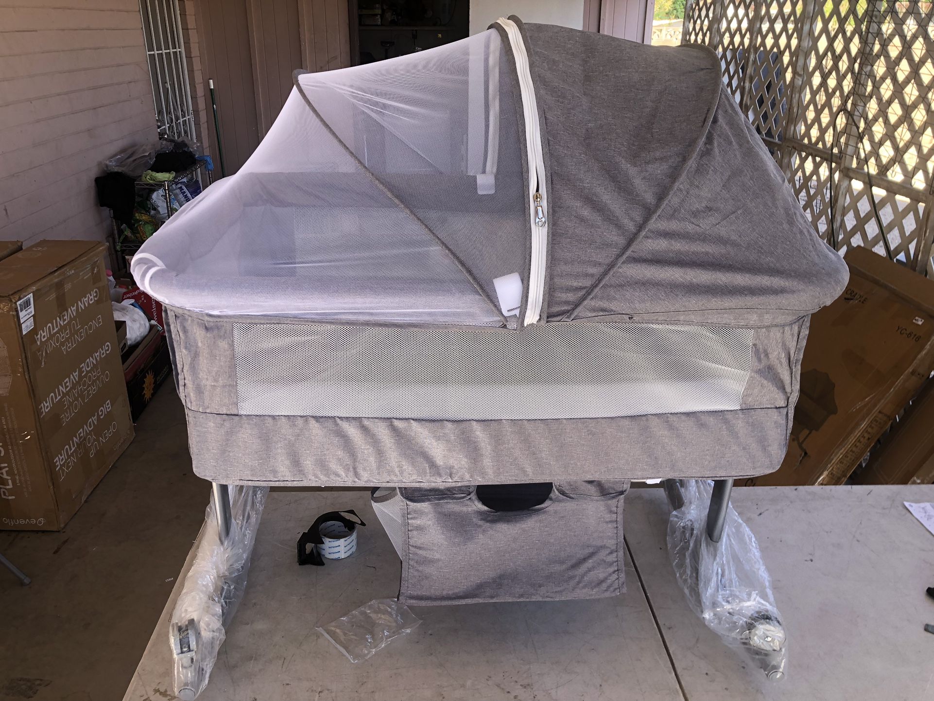3 in 1 Baby Bassinet | Bedside Sleeper, Bedside Crib, With wheels and mosquito net.(IS NEW)