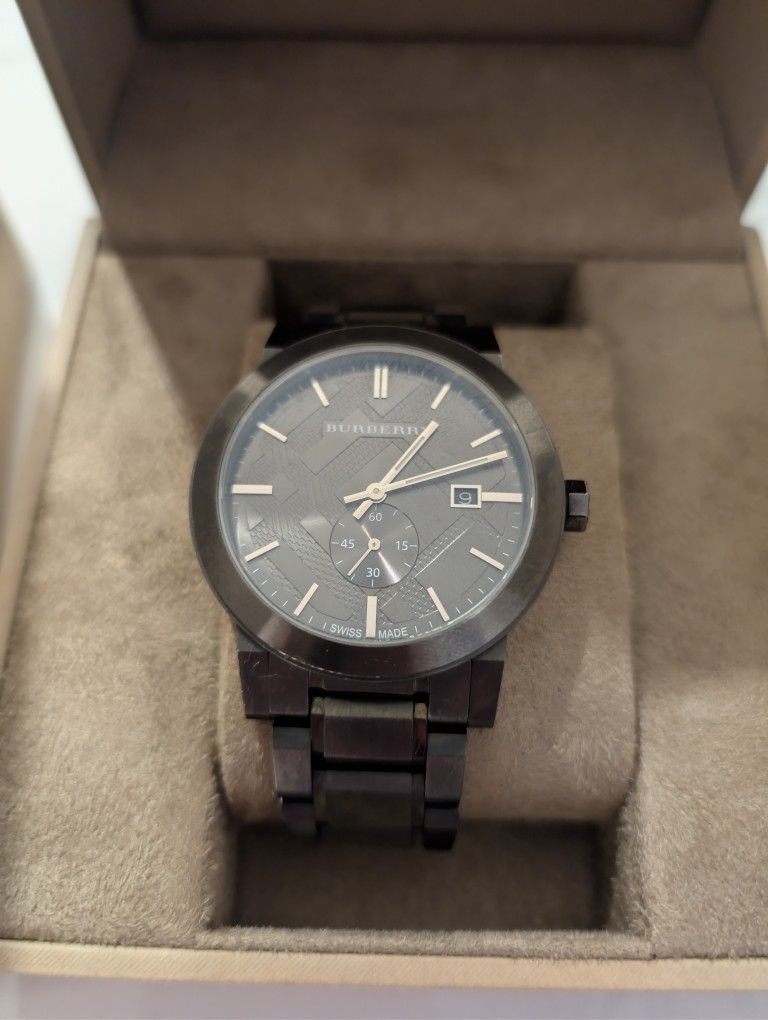 This is a beautiful men's Burberry watch complete with extra links, full display box and instructions. No scratches and it is pristine.