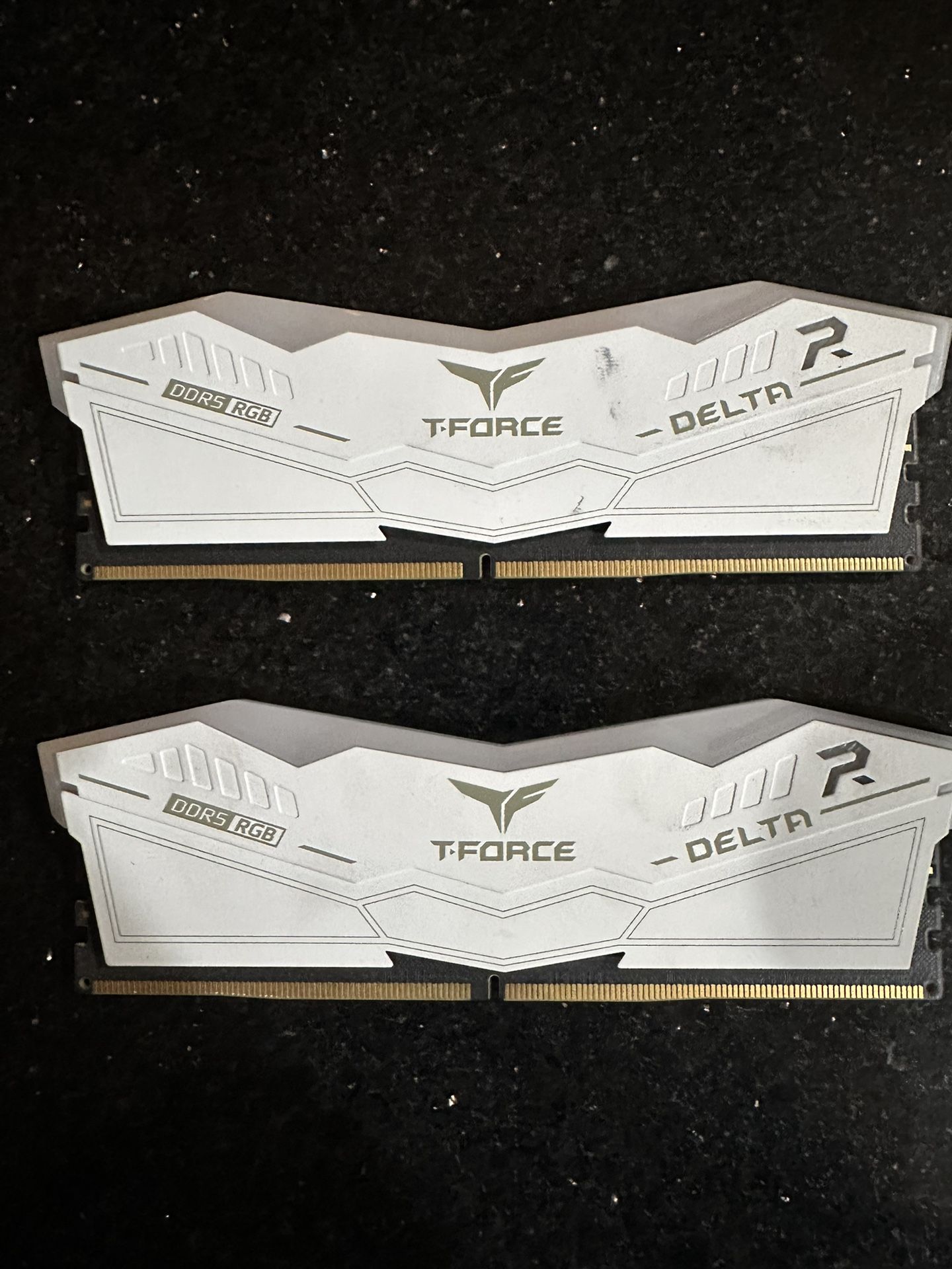 TEAMGROUP T-Force Delta Alpha RGB DDR5 Ram 32GB Kit (2x16GB) 5600MHz (PC5-44800) CL40 Intel XMP 3.0 & AMD Expo Compatible Desktop Memory Module Ram White FF8D532G5600HC40BDC01 Never used, pulled out of new computer to put upgraded version