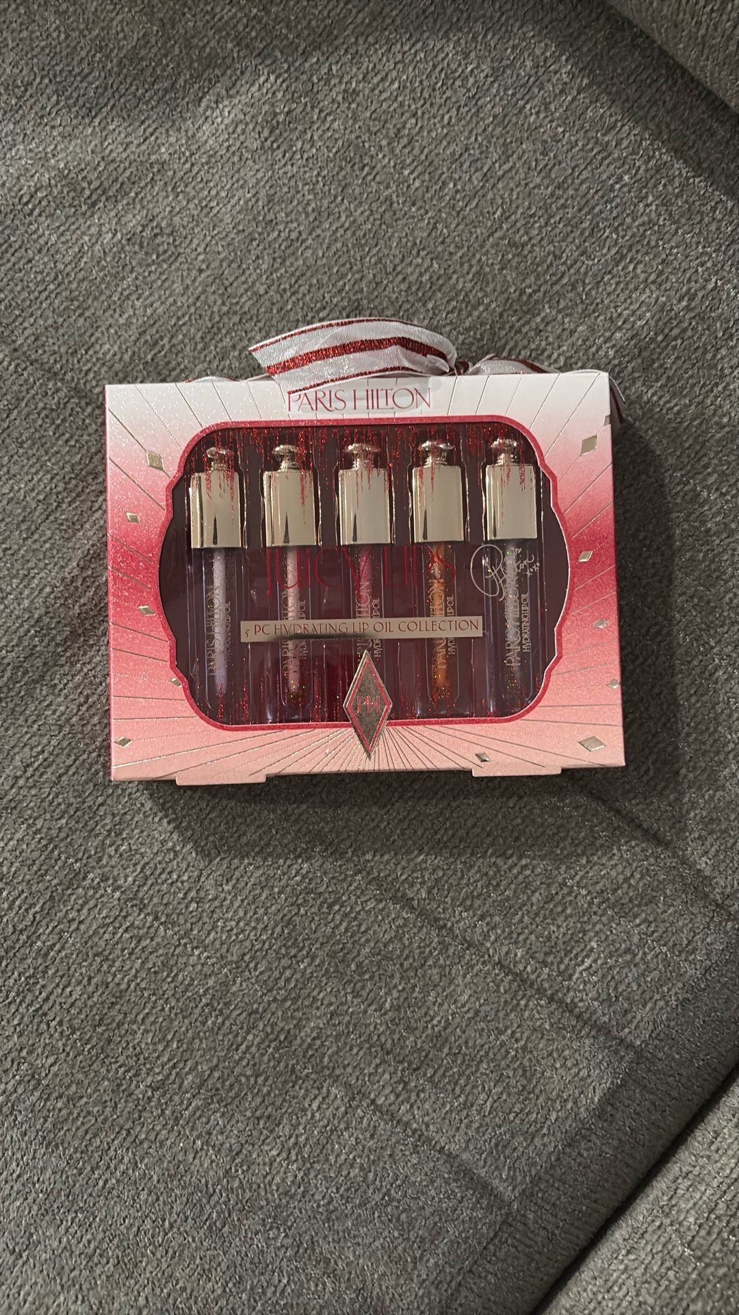 New 5pcs lip oil. Candy cane ribbon on top great for Xmas. Never opened.