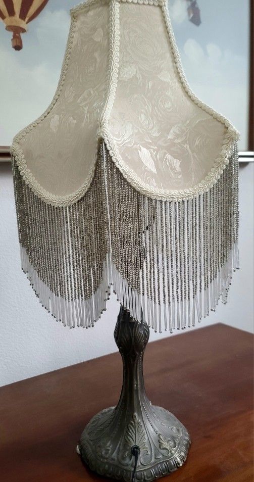 Stunning Victorian Cream Rose Jacquard Beaded Table Lamp