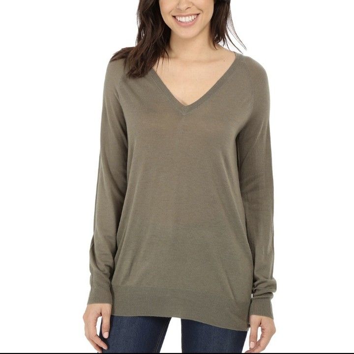 Equipment Femme 100% Cashmere Sweater Women's Xsmall Xs Knit V-Neck olive green