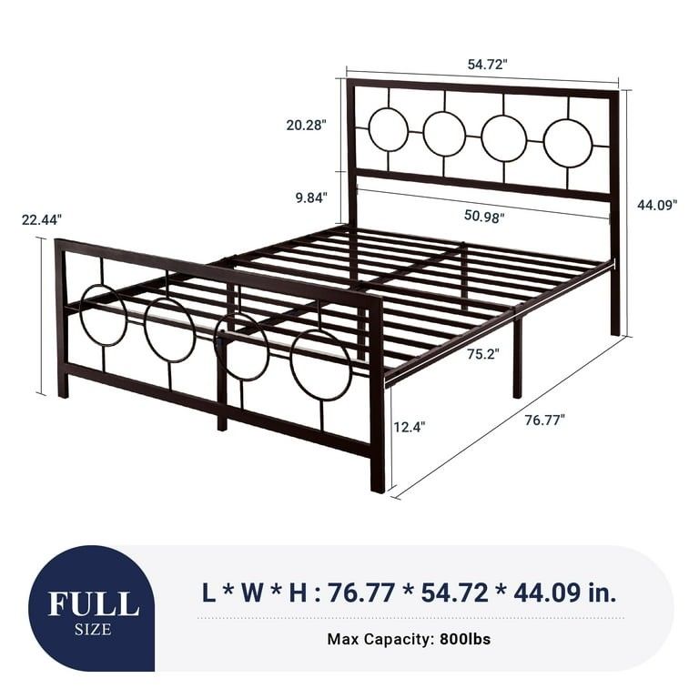 Full Size Metal Platform Bed Frame with Modern and Vintage Headboard and Footboard, Brown