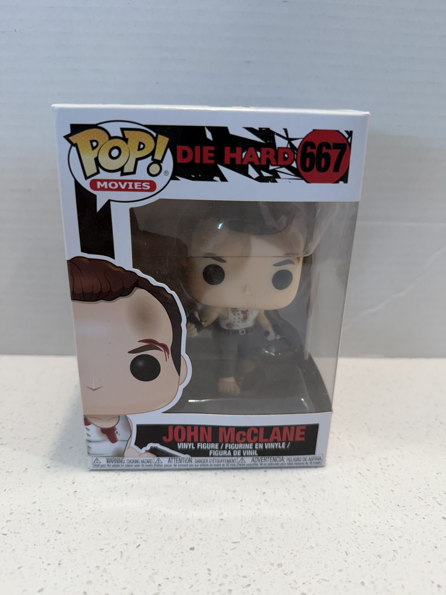 Die Hard #667 funko pop. Box has small dings and a pen mark, but pop figure has never been out of the box and is in new condition.