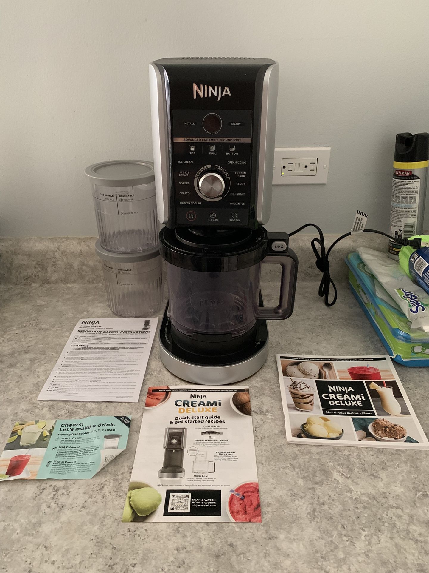 đ¨ Ninja Creami Deluxe â The Ultimate Frozen Treat Maker for Custom Desserts! Upgrade your kitchen and unlock endless dessert possibilities with the Ninja Creami Deluxe. This premium model delivers even smoother textures, bigger servings, and more functions than the originalâperfect for anyone who wants high-quality frozen treats at home. ⨠Key Features 11 One-Touch Programs Create Ice Cream, Sorbet, Gelato, Frozen Yogurt, Frozen Drinks, Slushies, Italian Ice, Creamiccinos, and moreâall with a tap. NEW Larger Deluxe Pints Enjoy bigger servings with spacious deluxe containers designed for sharing or meal prepping. Ultra-Smooth Creamify⢠Technology The Deluxe finely shaves and churns your frozen base for professional-level creaminess. Mix-In Magic Add your favorite toppingsâcookies, candy, nuts, fruitâusing the Mix-In program for perfectly blended extras. Health-Conscious Designing Make low-sugar, high-protein, dairy-free, keto, or allergy-friendly treats tailored to your lifestyle. Easy to Clean & Counter-Friendly Dishwasher-safe parts and a sleek, compact design make it ideal for any kitchen. đŚ Whatâs Included Ninja Creami Deluxe machine Deluxe pints with lids Recipe inspiration guide Quick-start manual â Perfect For Families ⢠Meal preppers ⢠Fitness fans ⢠Vegans ⢠Smoothie lovers ⢠Ice cream enthusiasts ⢠Gift givers