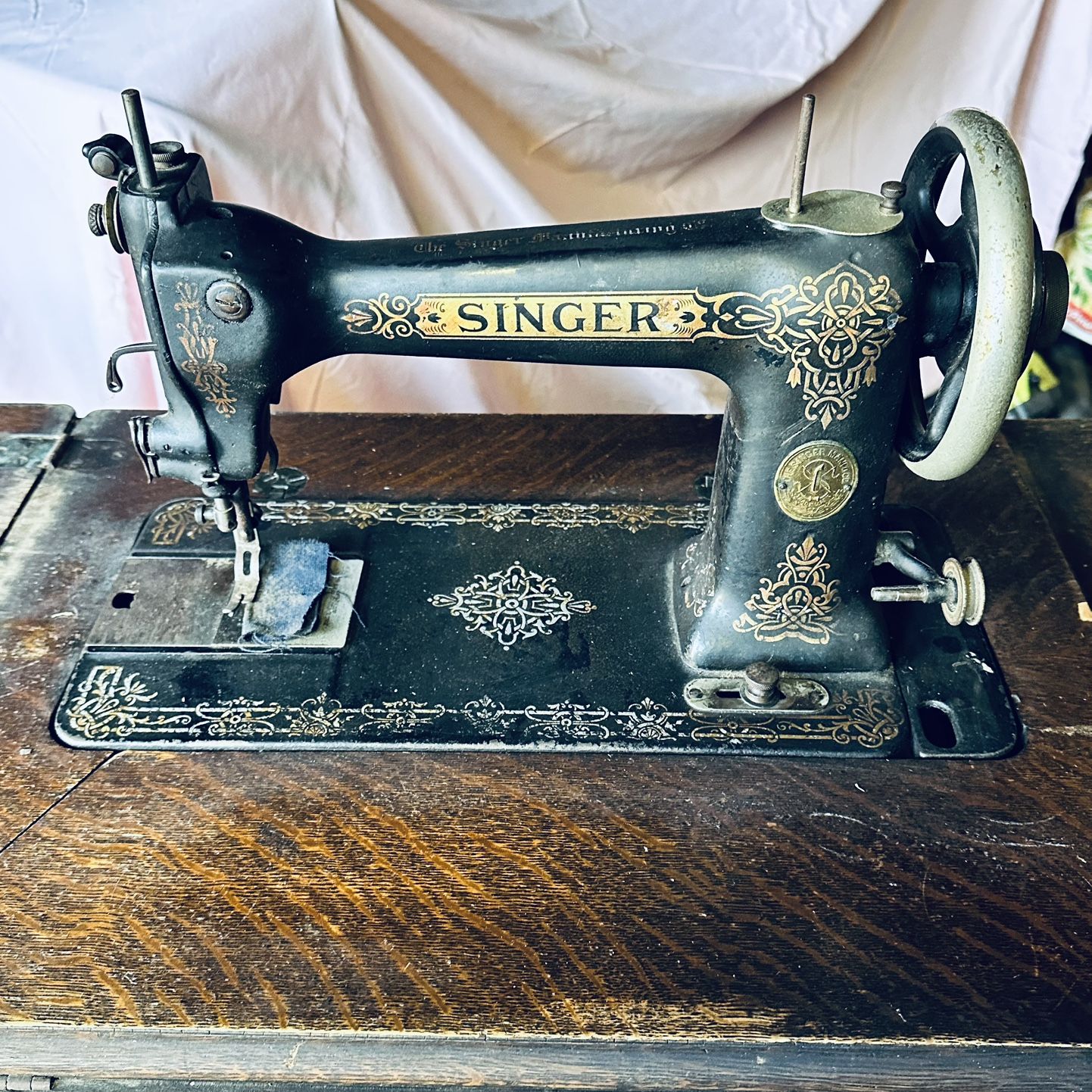 Vintage 9W7 Singer. It features the distinctive "Celtic Knot" decal pattern. Could be used as decor or parts or to add to your collection