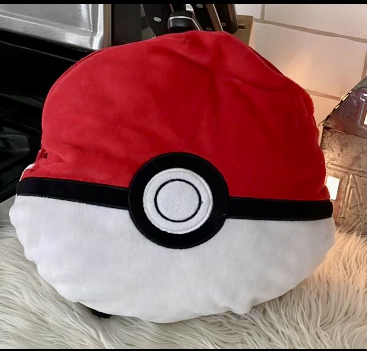 Pokémon Pokeball Plush Stuffed Backpack Soft Zip Bag White & Red New condition Soft & clean Smoke free home