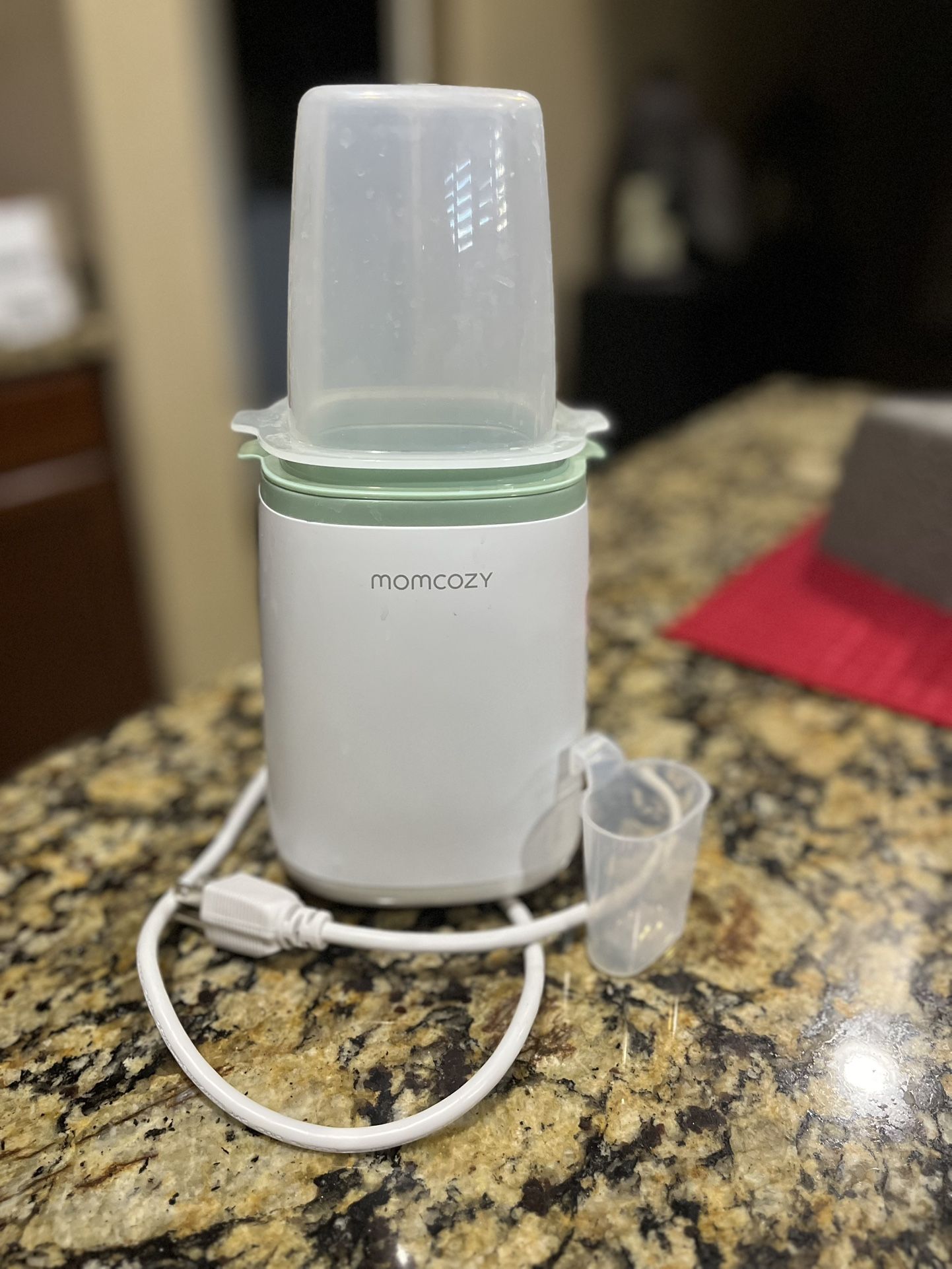 Momcozy Bottle Warmer: Fast Warming/Food Heating/Steaming/Thaw/24H Keep Warm/Material Selection. Momcozy smart bottle warmer fits most bottle types and materials and heats baby bottles, and baby food safely and evenly. It is suitable for feeding babies at different ages, from breast milk. Intelligently Heating: Our intelligent heating design makes the temperature more accurate. Choose the right milk status, bottle material, and milk volume, the baby bottle warmer will automatically heat to the temp closest to mom's breast milk, which helps your baby's digestion and retains the nutrients in the milk. Less Waiting Time: 30% faster heat-up speed, a game-changer for parents and caregivers. This baby bottle warmer can warm milk from cold to right temperature in as little as 2-5 minutes. Less waiting time, no crying baby. One Touch Thawing: Thaw frozen milk with one touch. Just put a bottle/bag of frozen milk into the portable bottle warmer and press the "THAW" button, the machine will automatically thaw, heat frozen milk, and finally keep it warm for up to 24 hours, convenient and easy to use. Steaming: The bottle warmer for breastmilk provides steam up to 100℃ (212℉)to keep bottles and baby food jars always clean, giving babies the best care.