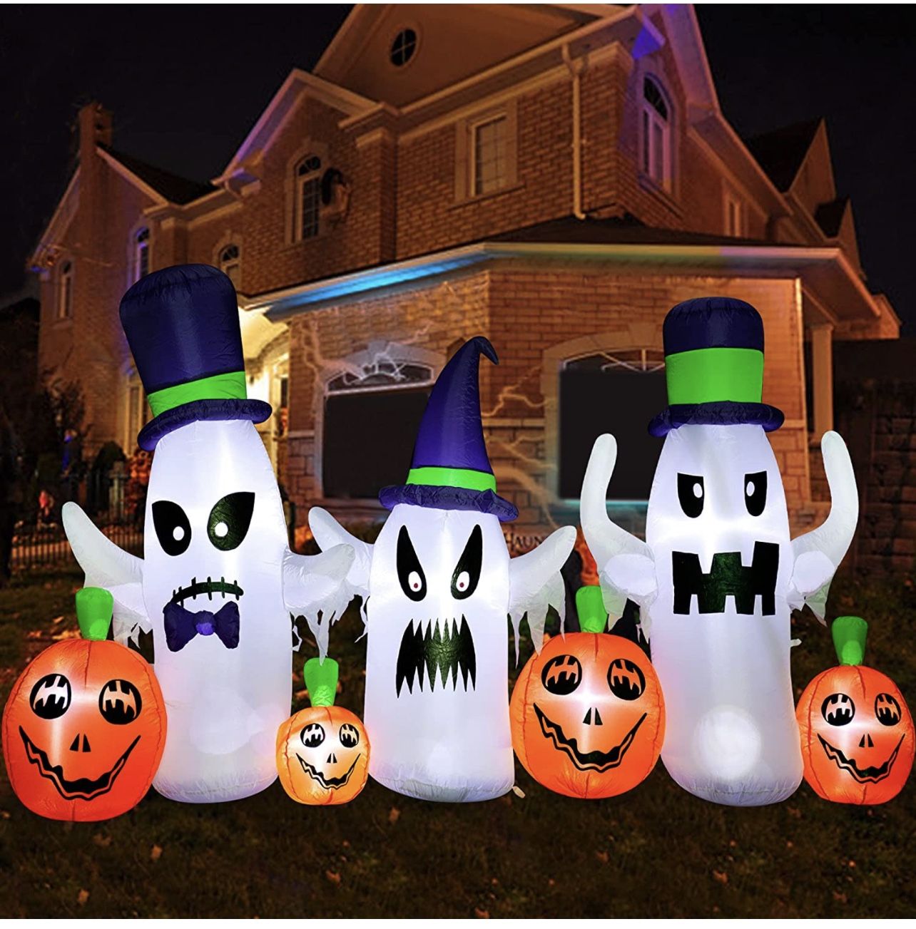 9Ft Long Halloween Inflatables Ghosts with Pumpkins Decorations, Halloween Outdoor Inflatables