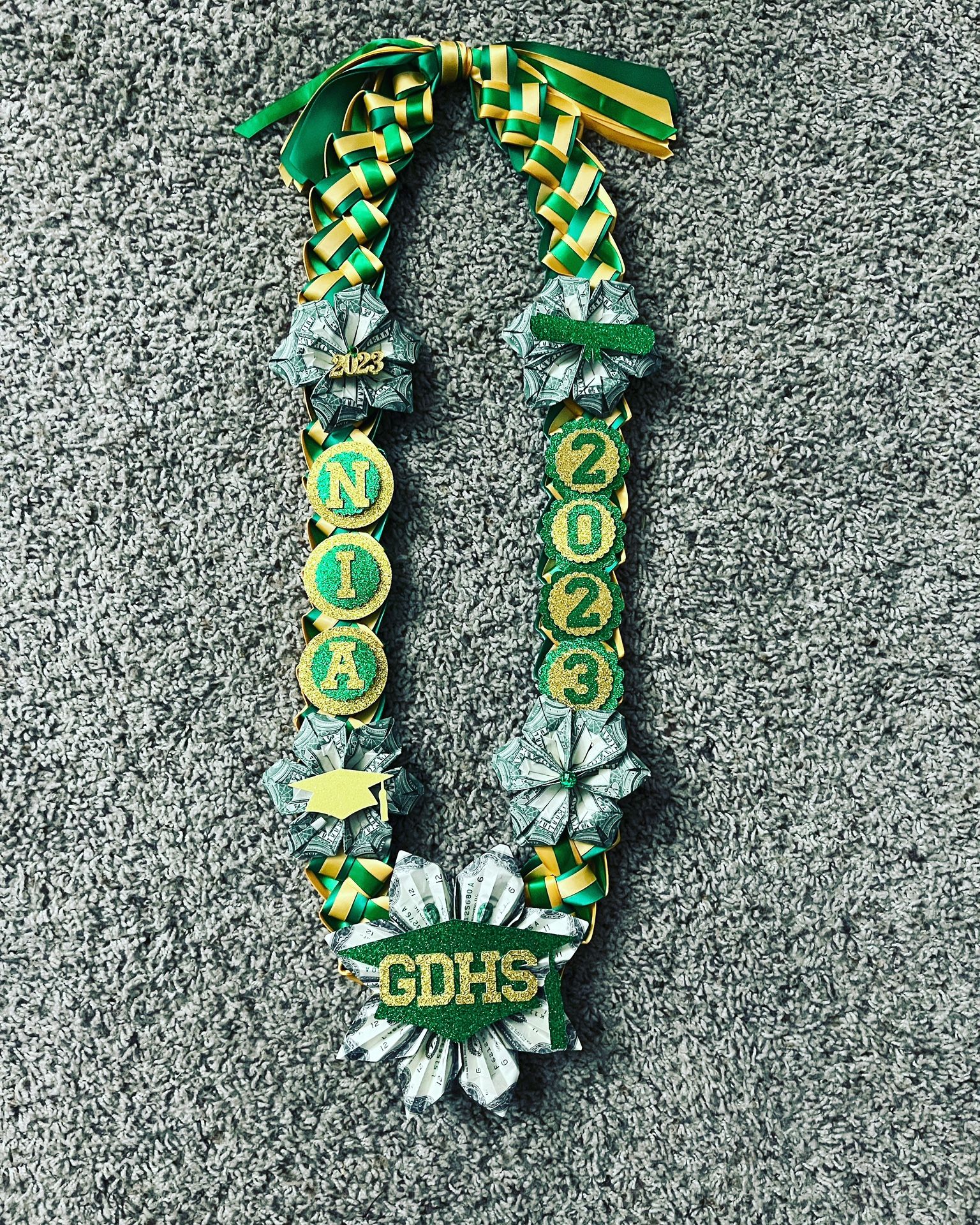 Custom made graduation lei and stoles. Grad lei can be made with and without money . Lei’s start at $30. Stoles start at $35. Message me for custom orders . Local pick up in Livermore , Stockton, and Union City . Shipping available .