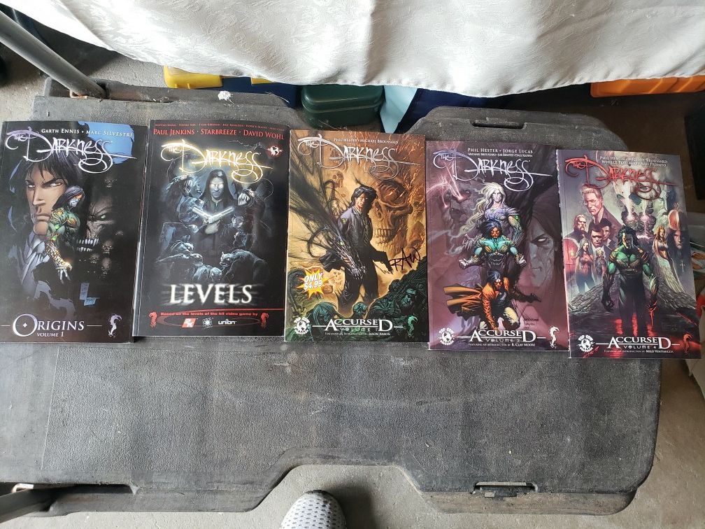 5 cartoon novels in good condition. Darkness by phil Hesterand Michael also Garth Gunnison, Marc Sylvester. 4 were originally 17.99 1 was a special for 4.99. Asking $10