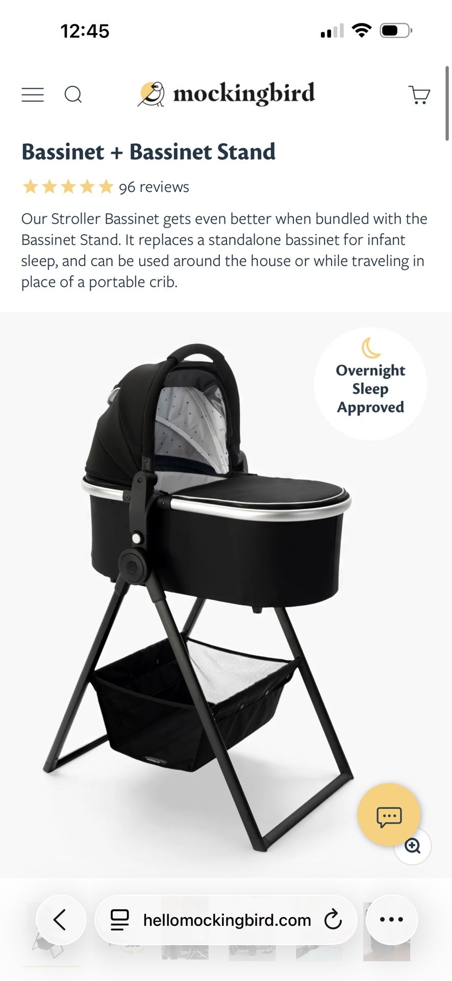 Portable bassinet with stand. The bassinet can be attached to mockingbird stroller, used with the stand, or used alone. Lightly used when my daughter was a new born