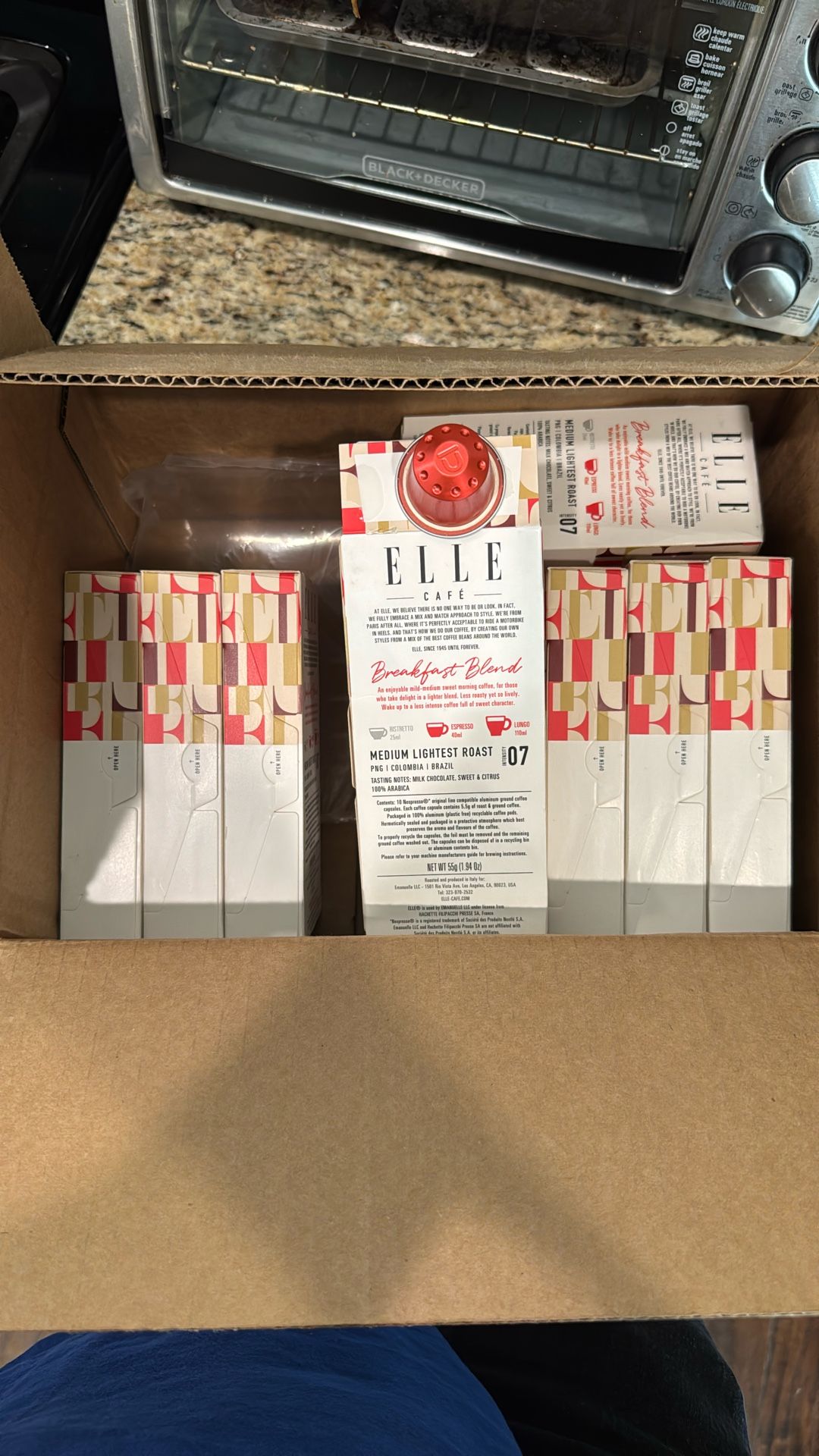These are Elle Cafe Nespresso compatible aluminum coffee capsules. They have never been used and are brand new. I bought the wrong size for my Nespresso machine and can’t use. My loss is your gain. Let me know if you have any questions