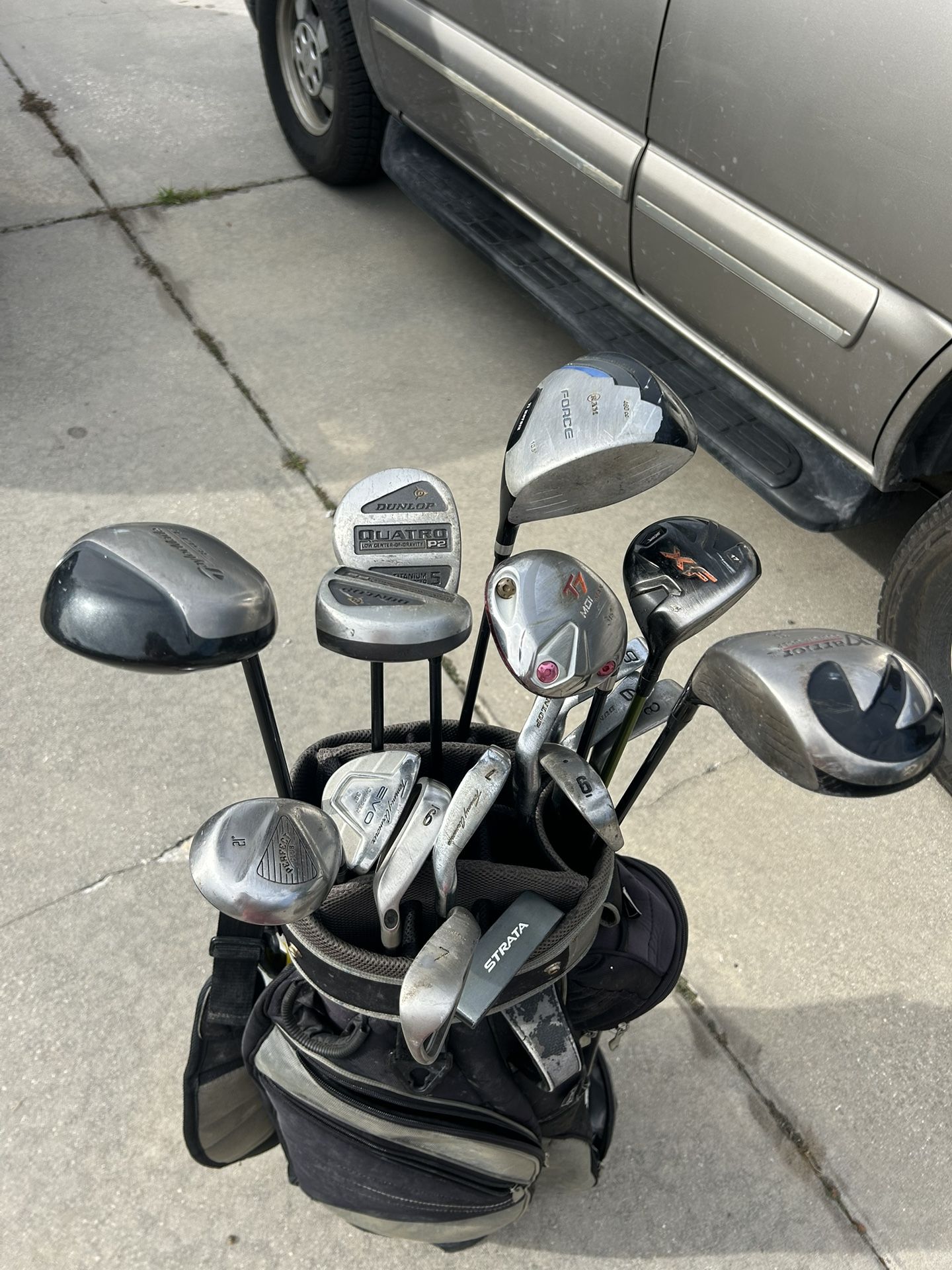 5-9 irons 6-8 ping irons 3 drivers 5 wood 4 wood chipper club putter 21 degree perfect club