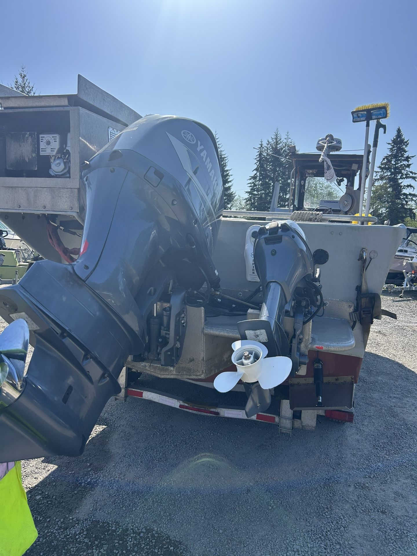 Both run as they should. Bracket is in great shape. Reason for selling -Upgrading to twin outboards . Controls for both and hydraulic steering system also. (contact info removed)(text) for more info if you want. $23,000 cash./price reduction ——$15,000