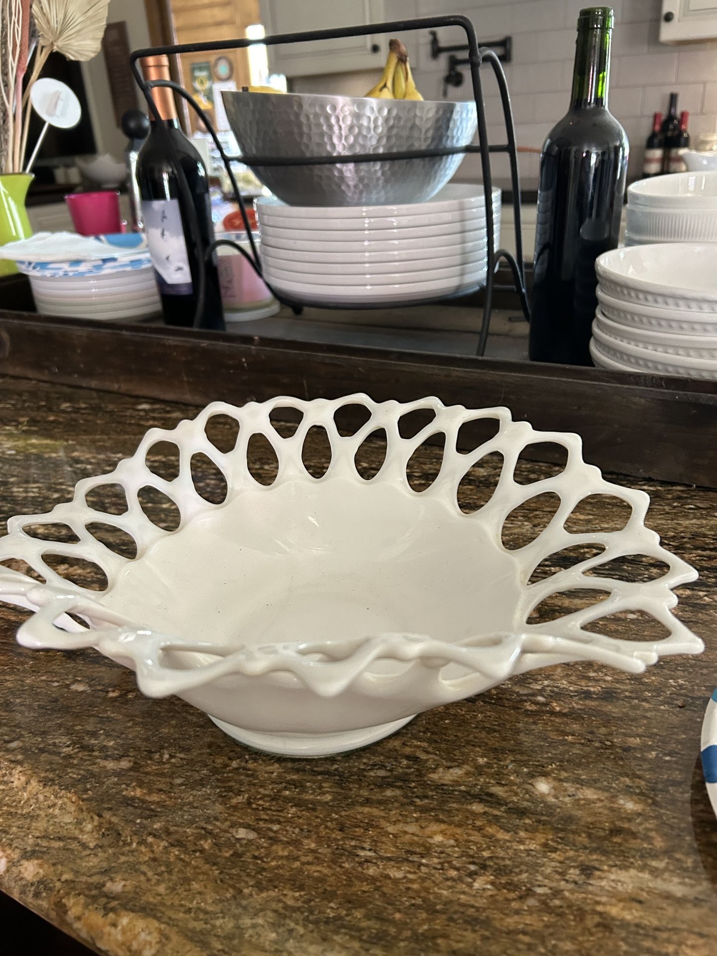 Westmoreland Doric Milk Glass Bowl, White Fused Glass Wave, Large Art Glass Home Decor, Tropical Coastal Home Accent, Glass Art Collectibles