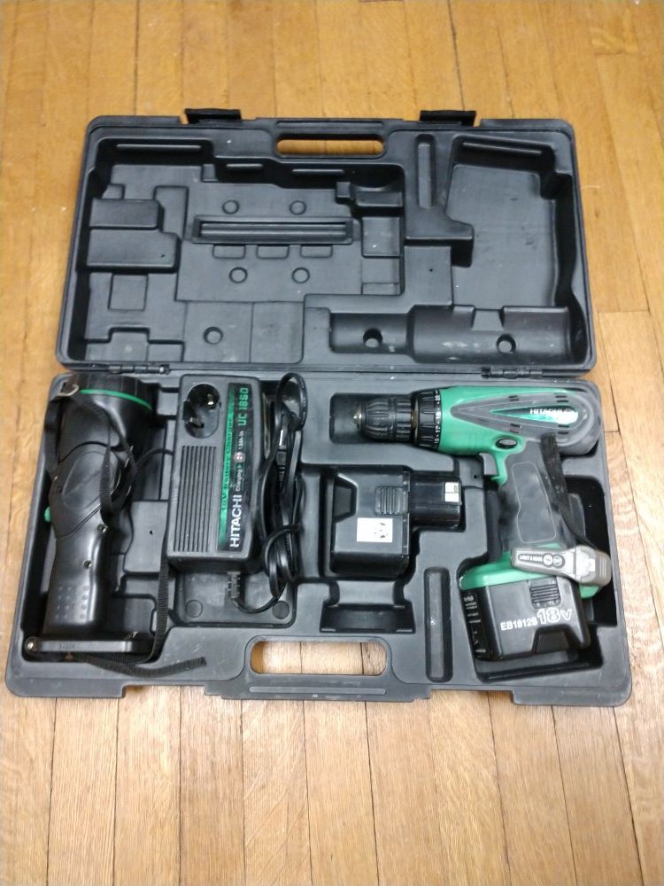 Hitachi 18 v cordless drill, flash light and charger