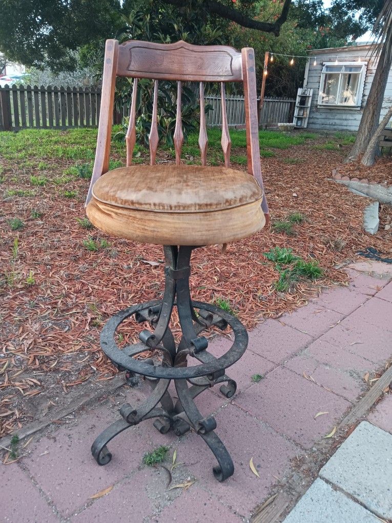 Cool vintage barstool. 42 inches tall. Heavy metal swivel base.