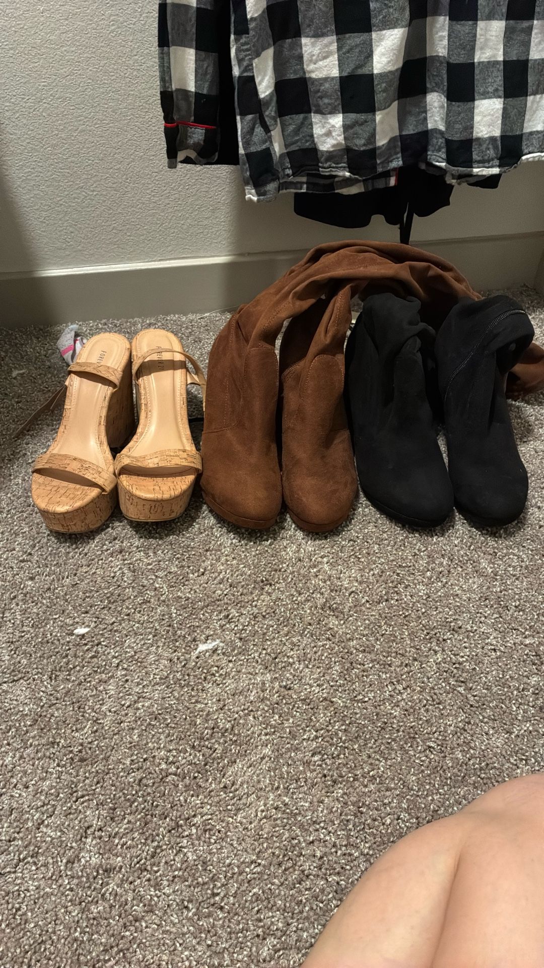 Black and brown thigh high boots size 8 Cork pattern wedge heels from forever 21 size 8 $25 for all