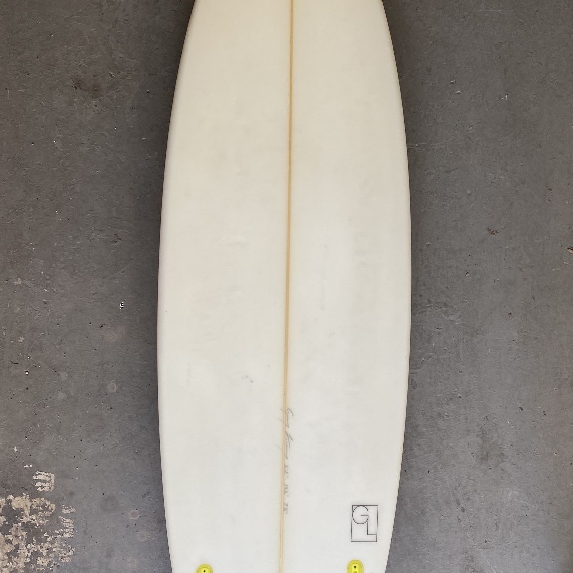Good condition GL thruster. Got this board a while ago and I’ve hardly ever used it, so just freeing up some space in the garage. No major damage, just minor surface dings here and there from use. Still watertight. Future Fin boxes. Foam core. Dimensions are below: 6’2”x19.5x2.5 Open to offers.