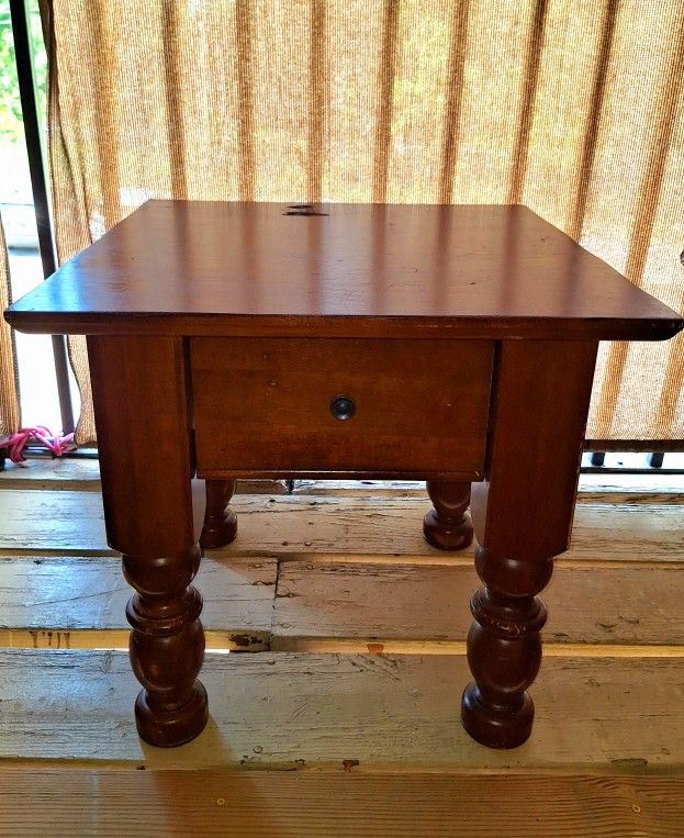 Antique Single-Drawer End Table. Supreme wood quality. It has some scratches, but can be easily refinished.