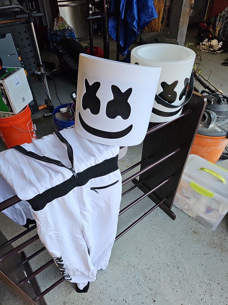 We have this marshmeloo custom, size M With a bucket and face mask , ready to pick up , only used once. Asking for $15.00 Free kids picture Album and kids sand play toys