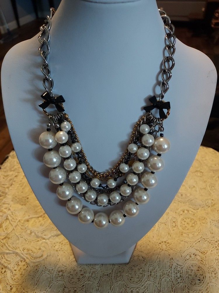 Excellent preowned condition. Silver/pearl strands necklace
