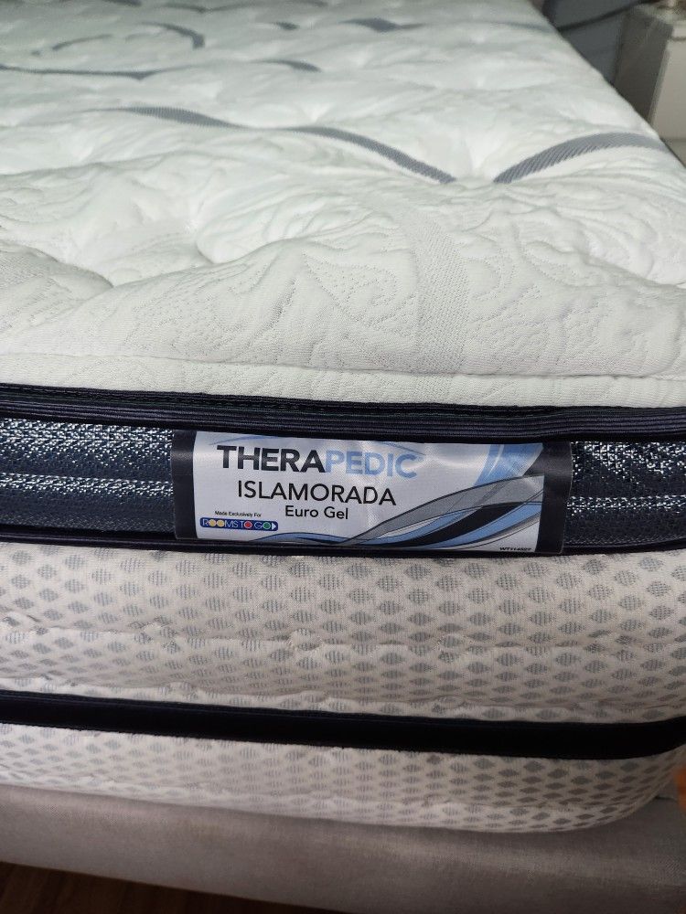 Beautiful bed frame with head board and mattress with pillow top from Rooms to Go .