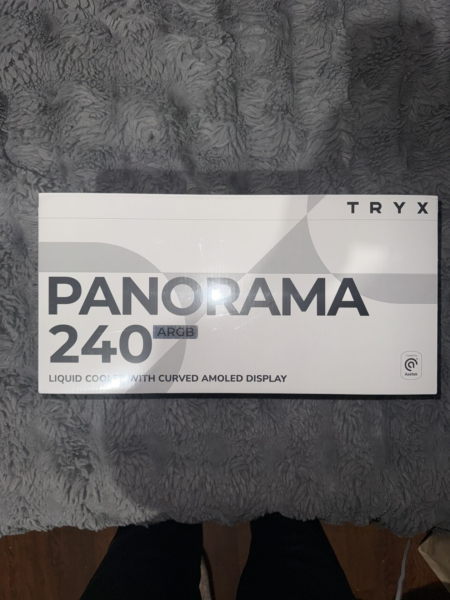 Brand new TRYX Panorama 240 ARGB liquid CPU cooler with a curved AMOLED display. High-end 240mm AIO cooler powered by Asetek, great for gaming or performance PC builds. Never opened or used. Features: • 240mm liquid CPU cooler • Curved AMOLED display on pump • ARGB lighting • Asetek cooling technology • Intel & AMD compatible • Sleek, premium design Perfect for anyone building a high-end PC or upgrading their cooling setup.