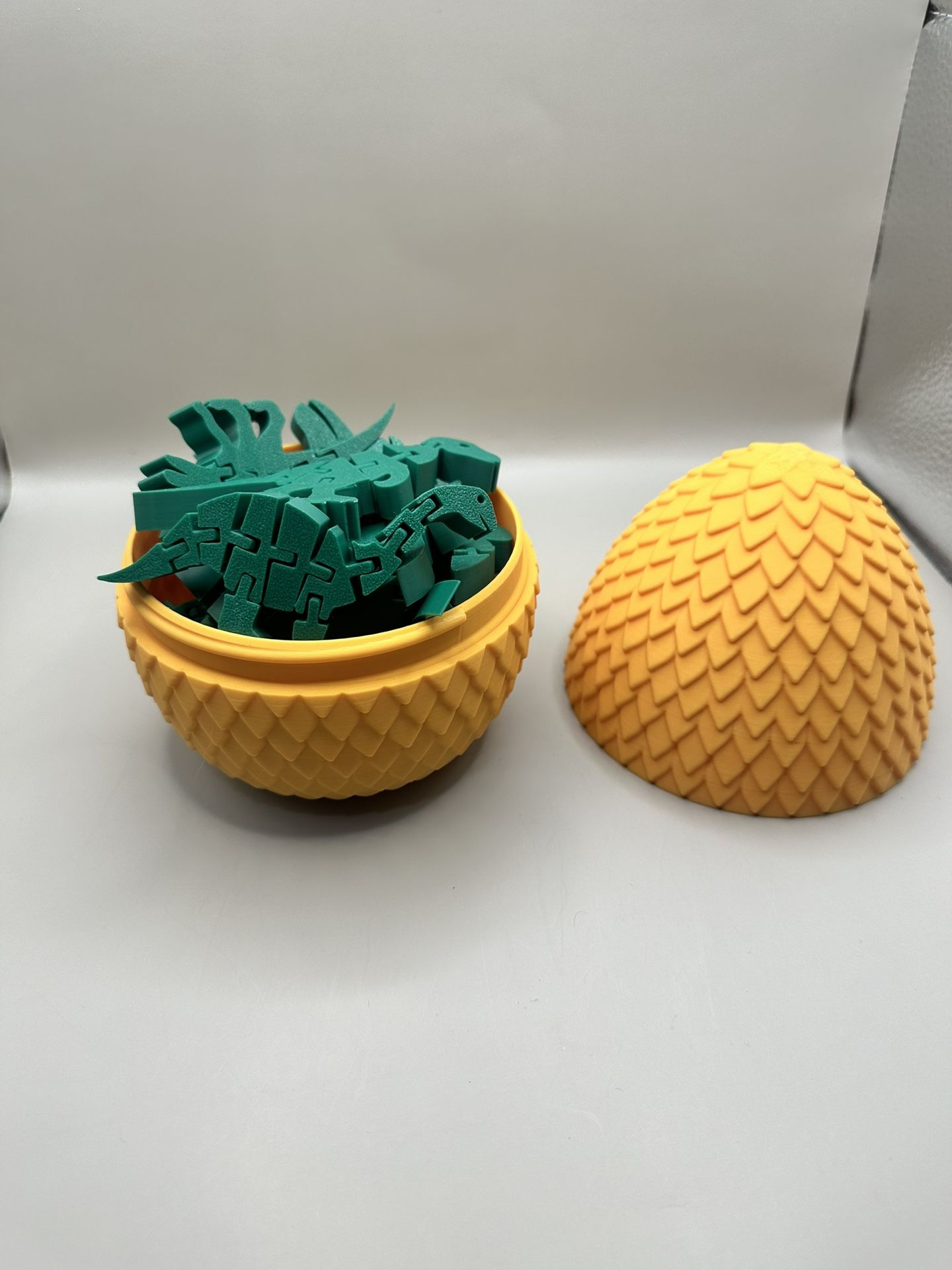Dinosaur egg with 14 Dinosaurs inside you can change the colors for the egg and the dinosaurs if you like just message me for more information everything is made with a 3D printer and its made once order is placed takes about one to two days to make if more time is need you will be informed