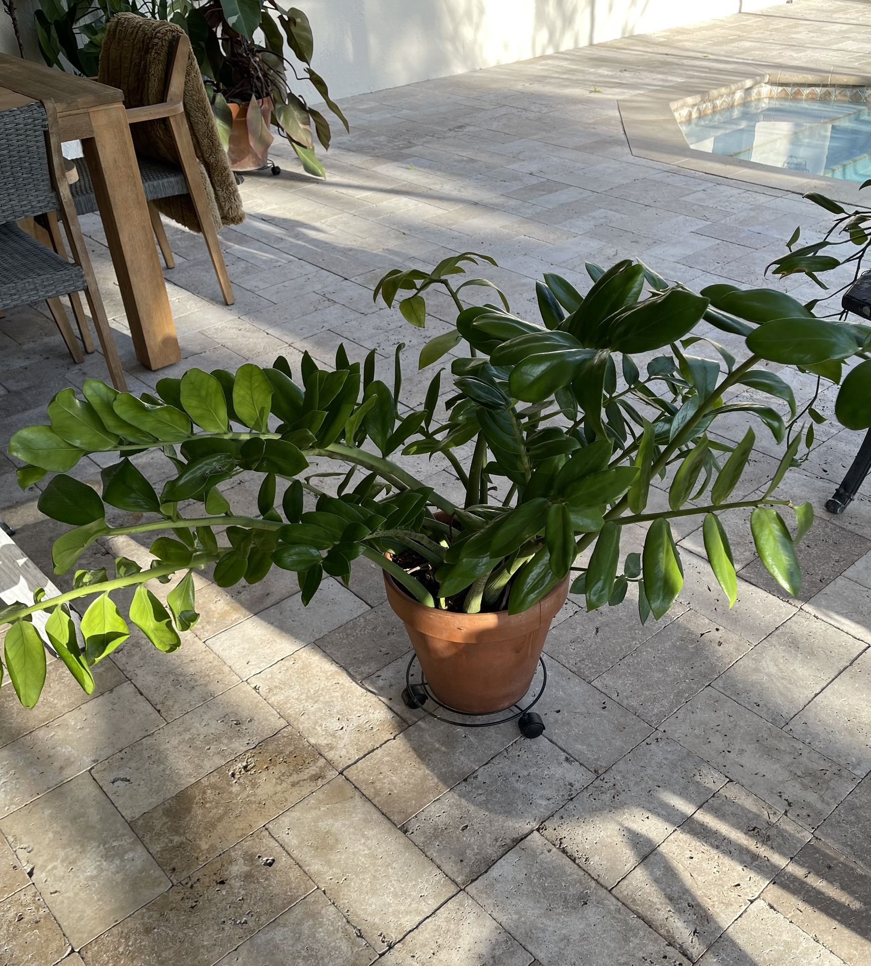 Large ZZ plant in clay pot. Clay pot does have a crack. Plant caddy not included. CASH ONLY