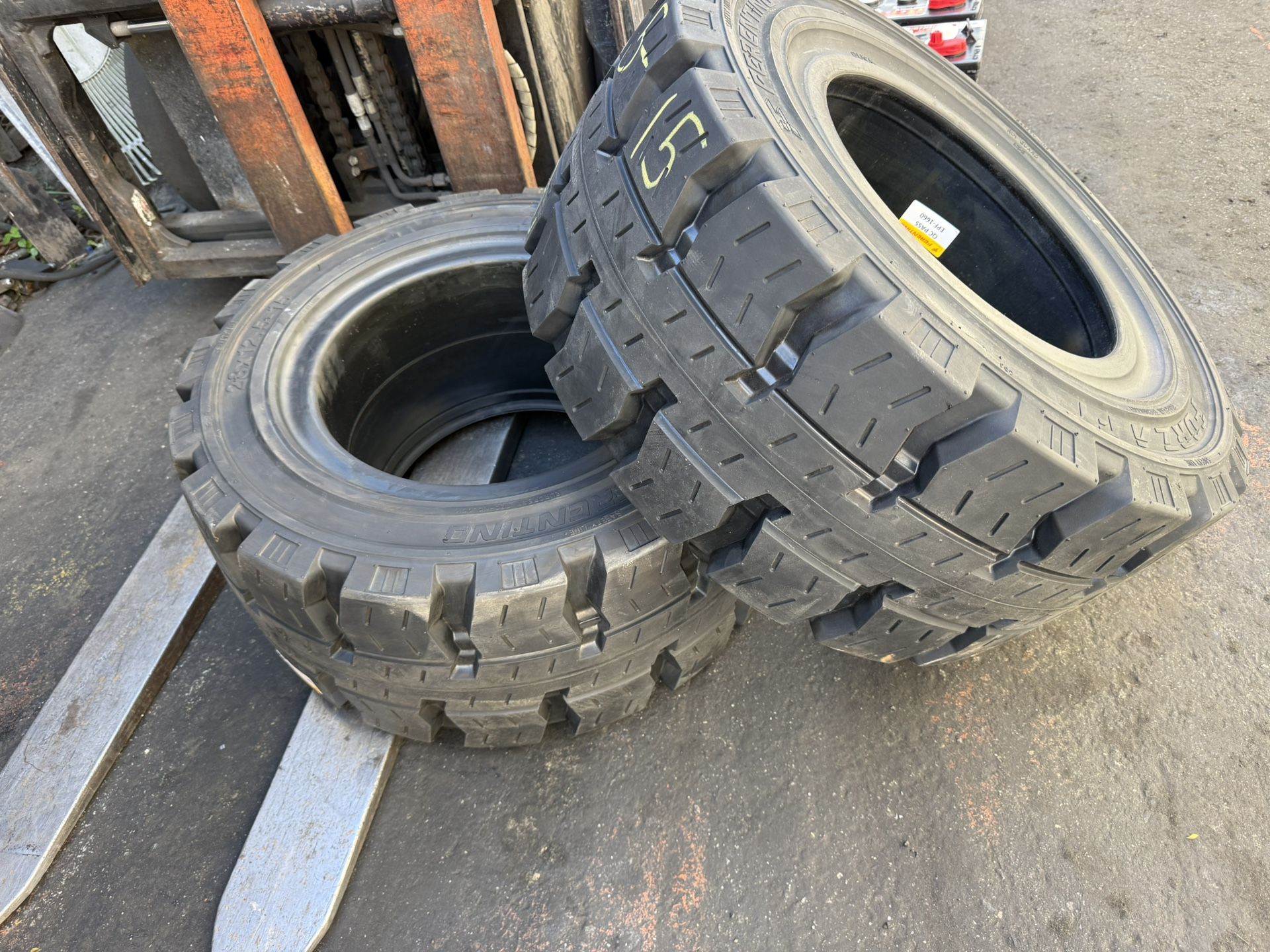 Brand new tires for forklift. 28x12.5-15 Brand Forza European Paid $800 for each Askin 1,000.00 for both tires . 28X12.5-15/9.75 TRACTION BLACK STANDARD FERENTINO FORZA F1 SOLID PNEUMATIC TIRE [355/55-15] Linde tires Toyota tires