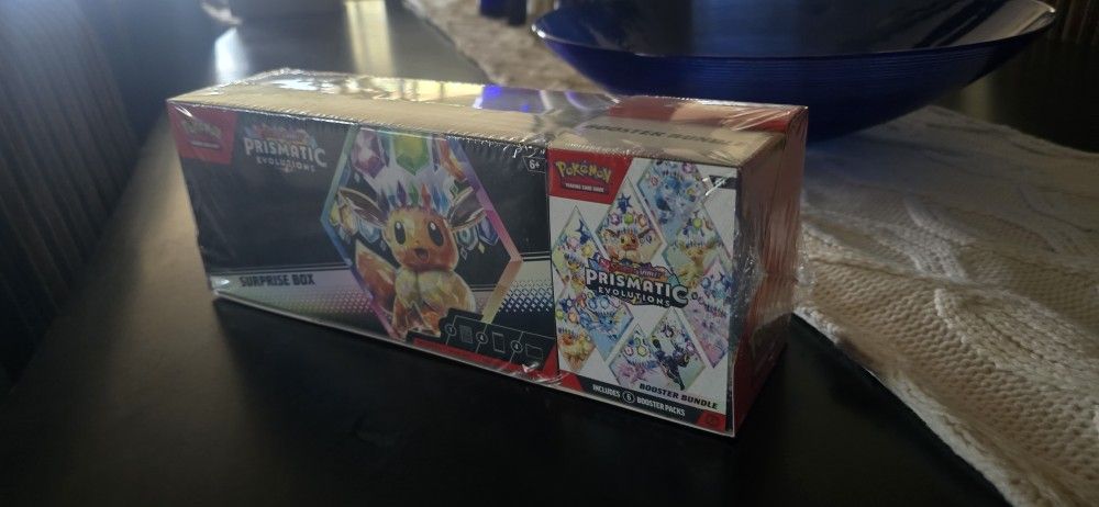 Filters 1 32 Listings As low as $104.00 Prismatic Evolutions Booster Bundle + Surprise Box Bundle (Sam's Club) Prismatic Evolutions Booster Bundle + Surprise Box Bundle (Sam's Club) - SV: Prismatic Evolutions (PRE) SV: Prismatic Evolutions Prismatic Evolutions Booster Bundle + Surprise Box Bundle (Sam's Club)-0 Unopened $104.00 + $14.99 Shipping Sold by Cardventures 1 1 of 1 Add to Cart View 32 Other Listings As low as $104.00 Sell this Report a problem Product Details Card Text:Eevee and its Evolutions all have unique strengths to discover—and they get even more powerful when they appear as Pokémon ex! The Pokémon TCG: Scarlet & Violet—Prismatic Evolutions Surprise Box includes: 1 of 9 randomly selected foil promo cards with a special logo, featuring Eevee ex, Vaporeon ex, Jolteon ex, Flareon ex, Espeon ex, Umbreon ex, Leafeon ex, Glaceon ex, or Sylveon ex 4 Pokémon TCG: Scarlet & Violet—Prismatic Evolutions booster packs Each booster pack contains 10 cards and 1 Basic Energy. Cards vary by pack. A box to hold everything, with 4 dividers to keep it organized A code card for Pokémon TCG Live Prismatic Evolutions Booster Bundle Includes: • 6 booster packs from the Pokémon TCG: Scarlet & Violet—Prismatic Evolutions expansion Each booster pack contains 10 cards and 1 Basic Energy. Cards vary by pack