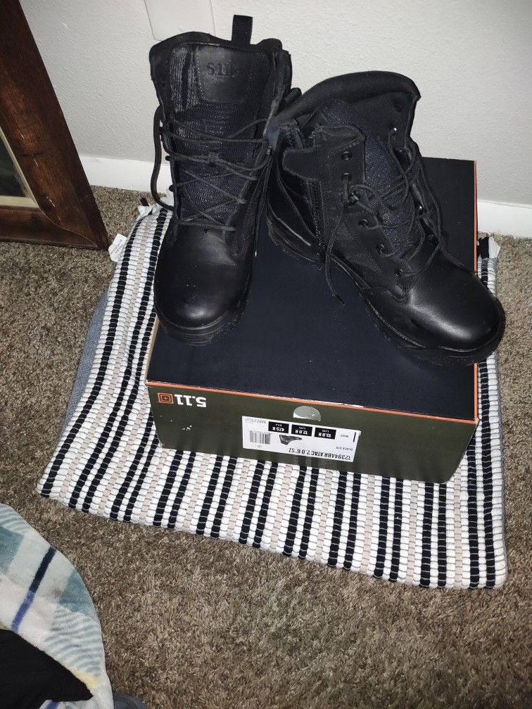 Brand new well almost brand new worn for hours. My feet are wide and this boot is too narrow but a really nice work , outdoors many places this boot fits in. 5.11 Tactical Boot. I'll give you more details in the description