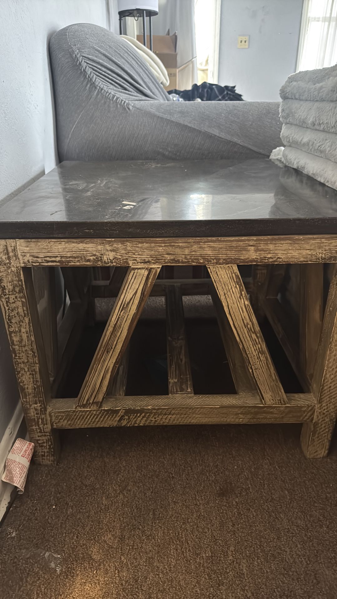 Marble topped end table wood grained. Very heavy duty! Must pick up! Matching coffee if wanted a set.