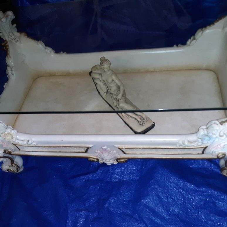 Very nice as well as rare & unique 2-piece hand carved wood Italian style table brilliantly designed in a bronze/golden trim , (sunken base) which items can be placed which makes it very distinctive with a thick designed glass top foundation (In Excellent Condition!!!) I am asking $1,475/Reduced or OfferUp [ No Checks No Deliveries] located in Dothan Alabama Thank You