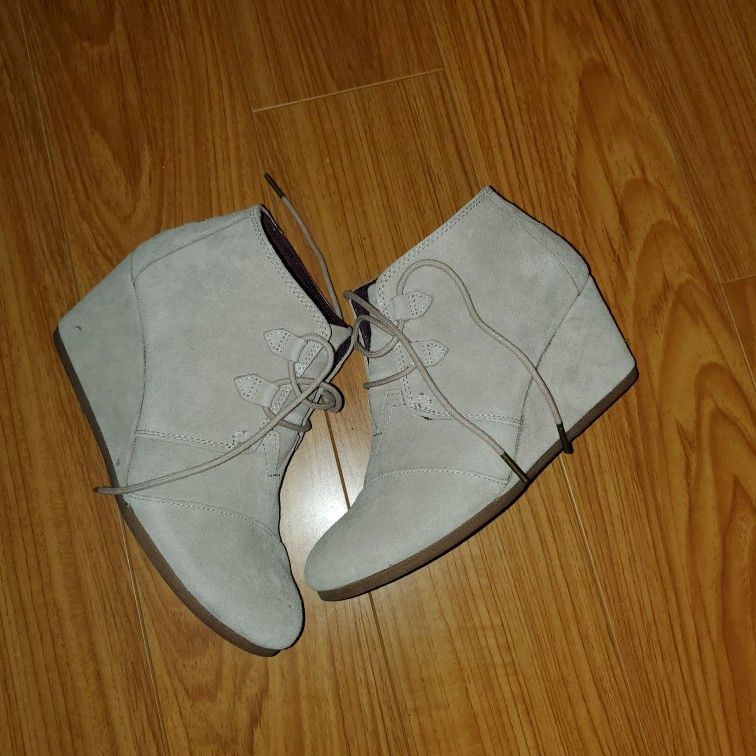 Light beige suede wedge booties. Tom's. Toms women's size 10. Great condition. From stitch fix.