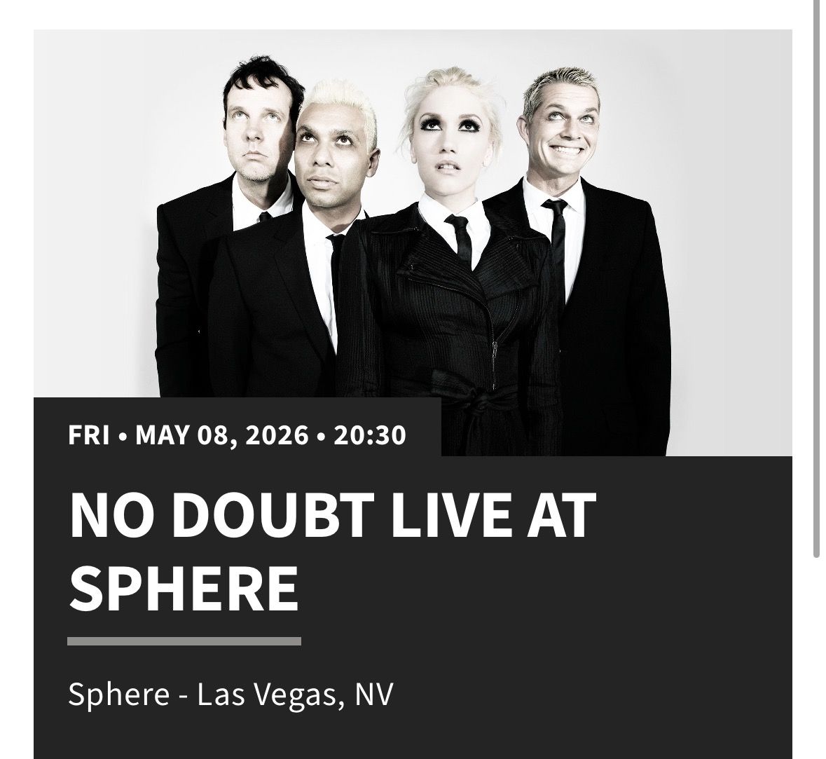 2 tickets - No Doubt Live @ The Sphere $400 for BOTH!