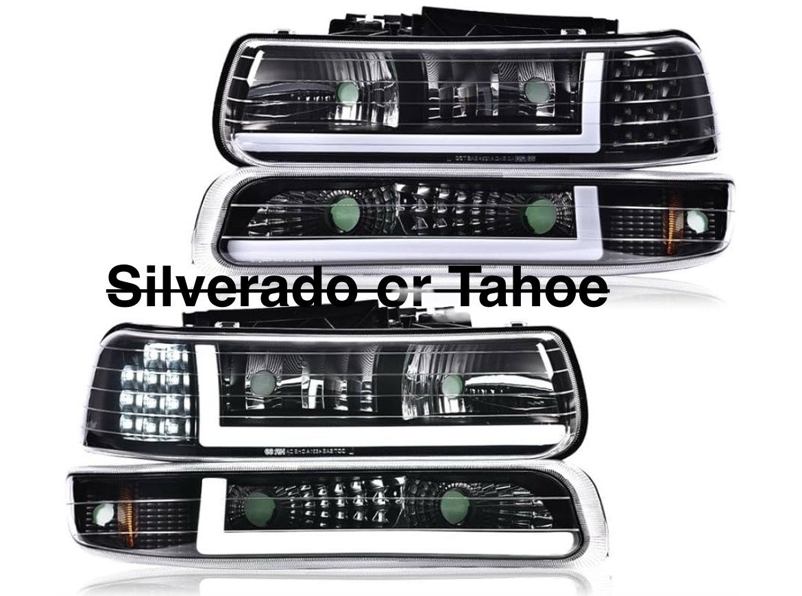 Black housing headlights and parking lights Fit 1999 to 2002 Chevy Silverado 2000 to 2006 Chevy Tahoe , suburban
