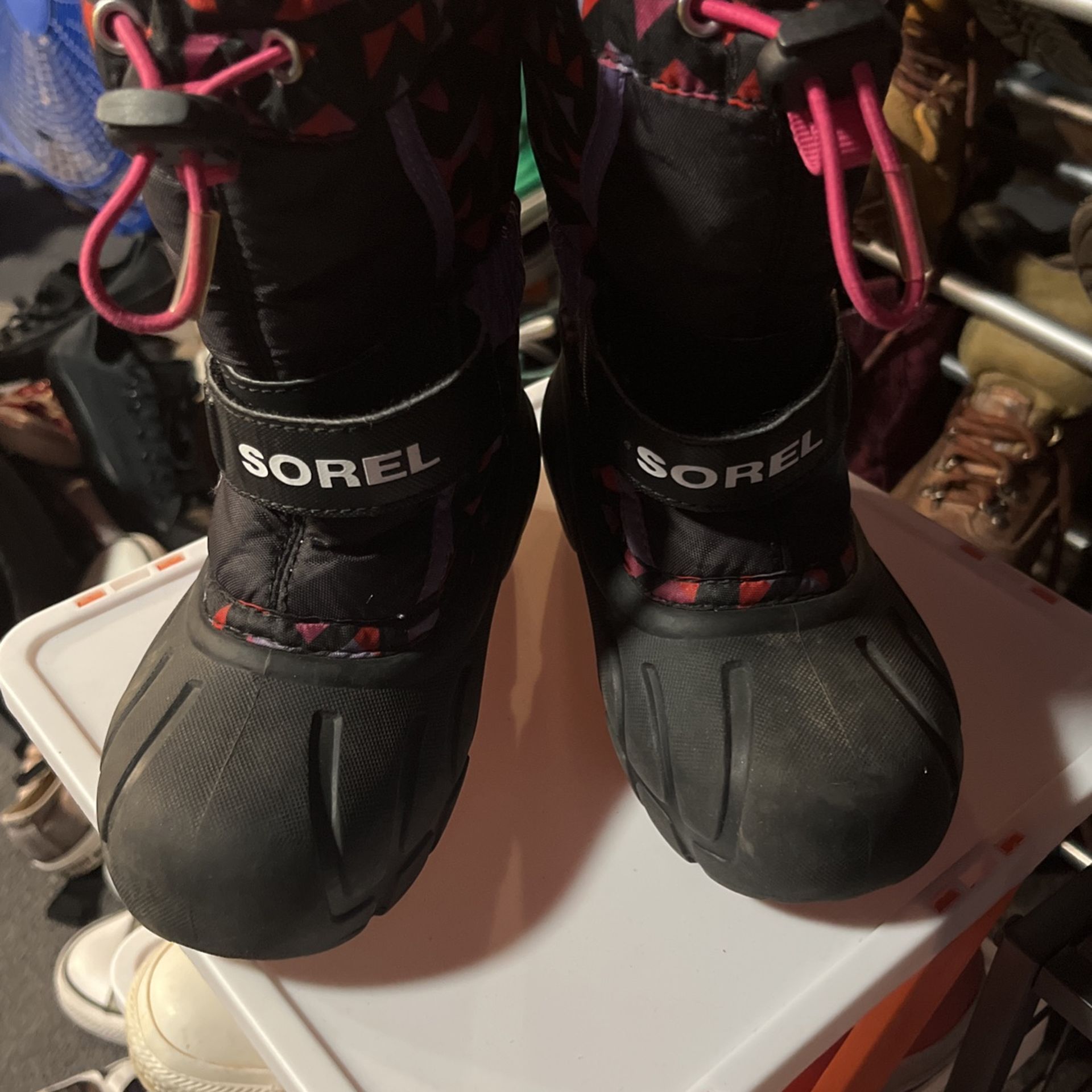 Sorel Girls Flurry Print Winter Snow Boots Mid Calf Kids size US 10 EU 27 Purple