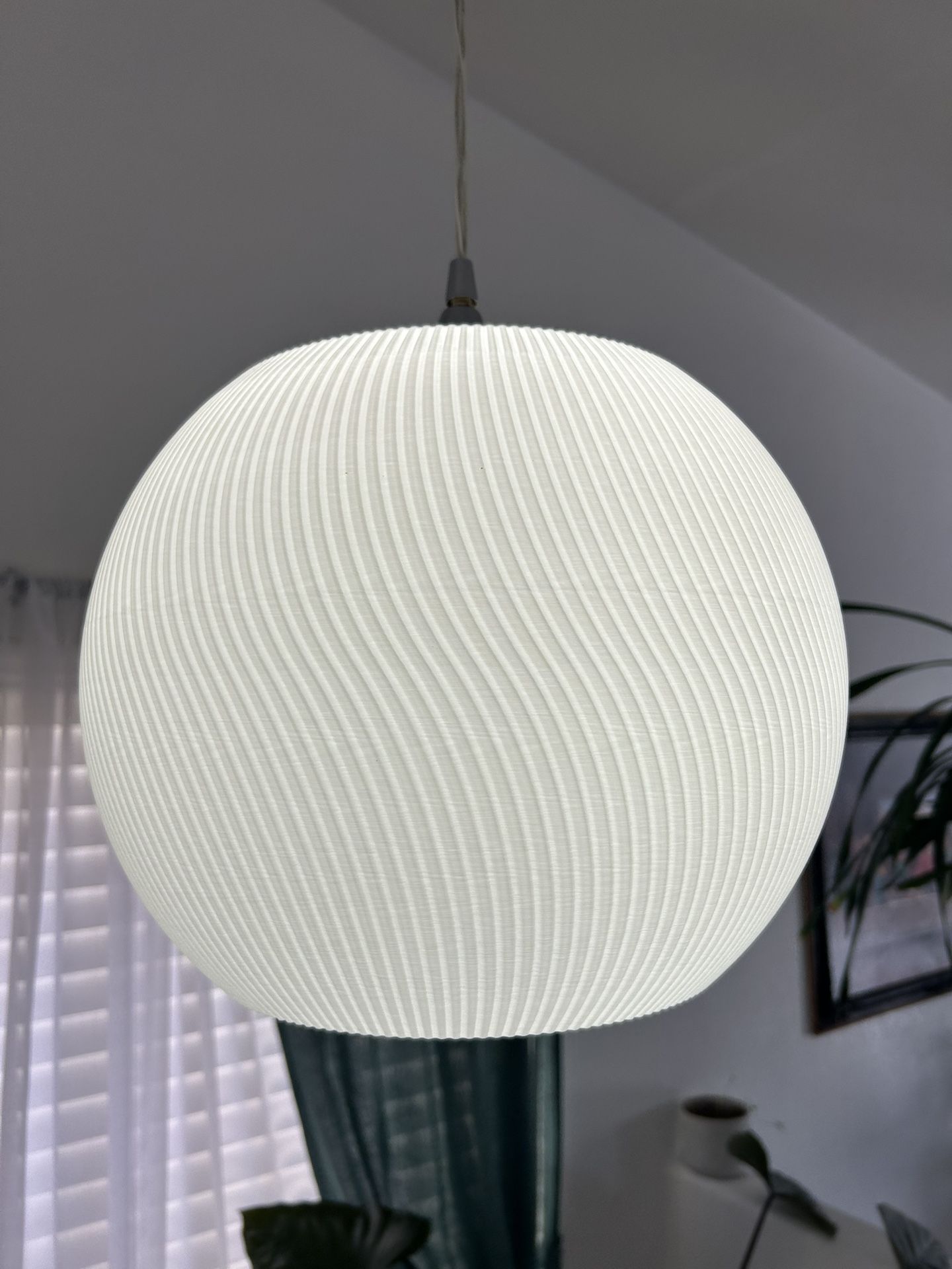 Looking for a statement piece that will light up your space in style? Look no further than our Bubble Gum Lamp Shade! Designed and produced in-house, this mid-century-inspired shade is a must-have for any modern home. + Our Bubble Gum Lamp Shade comes with an optional black or white 10ft hanging light socket cord, as well as a ceiling hook. + Designed to accommodate an E27 bulb or LED bulb, this lamp shade ensures a seamless fit for your existing lighting setup. - this versatile product ensures easy installation and compatibility. + The diameter of the hole measures 1.61 inches, and adjustments at no charge to accommodate different sizes. So why wait? Add our Bubble Gum Lamp Shade to your cart today and start enjoying the perfect combination of style and function in your home! ____________________________________________________ DESIGNER 3DPPA is a dispersed manufacturing homeware brand by Jon and Semeli from Athens. They aim to brighten up spaces with unique, customisable and locally inspired products. ____________________________________________________ ✦ MATERIAL & SUSTAINABILITY ✦ Printed from fully recyclable PLA plastic or ASA, our lamp shades are not only stylish but eco-friendly too! ____________________________________________________ ✦ DIMENSIONS ✦ Size assembled (XL) inches: 10.36 " H x 13.60" W x 13.60" L cm: 26.31 H x 34.54 W x 34.54 L ____________________________________________________ ✦ IMPORTANT INFO ✦ ● Lamp shades are 3D printed in PLA . ● Price is for one. ● This product is designed exclusively for indoor purposes. Although, if requested, it can also be made for outdoor use at no extra cost. ● Light bulbs are not included. ● Choose from multiple colors to make a personalized statement. ● Standard shipping included tracking number to USA and Canada and most Countries around the World.