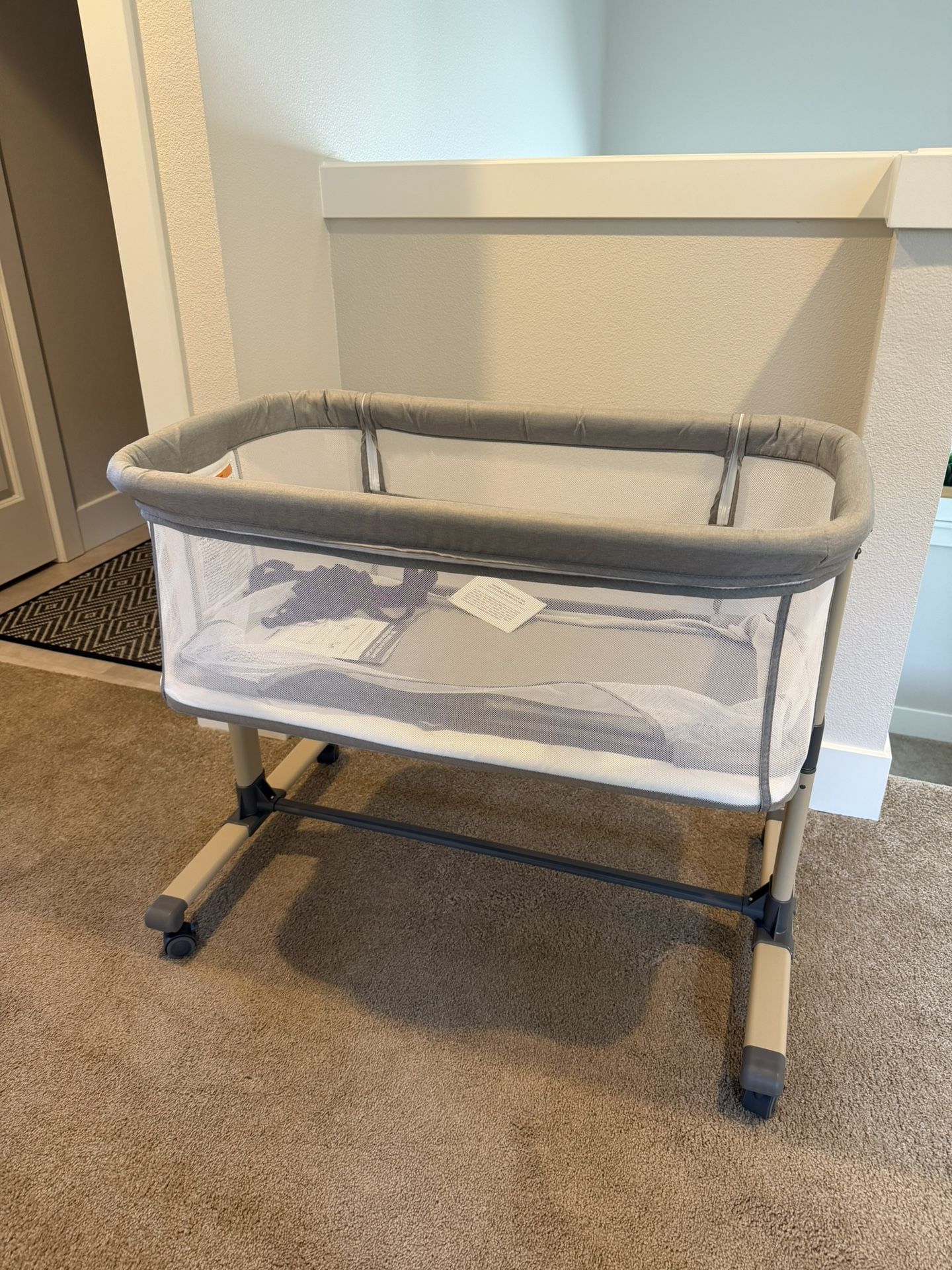 Brand new bassinet. See Amazon pictures for details of measurements. Bought as a gift and realized already has bassinet.
