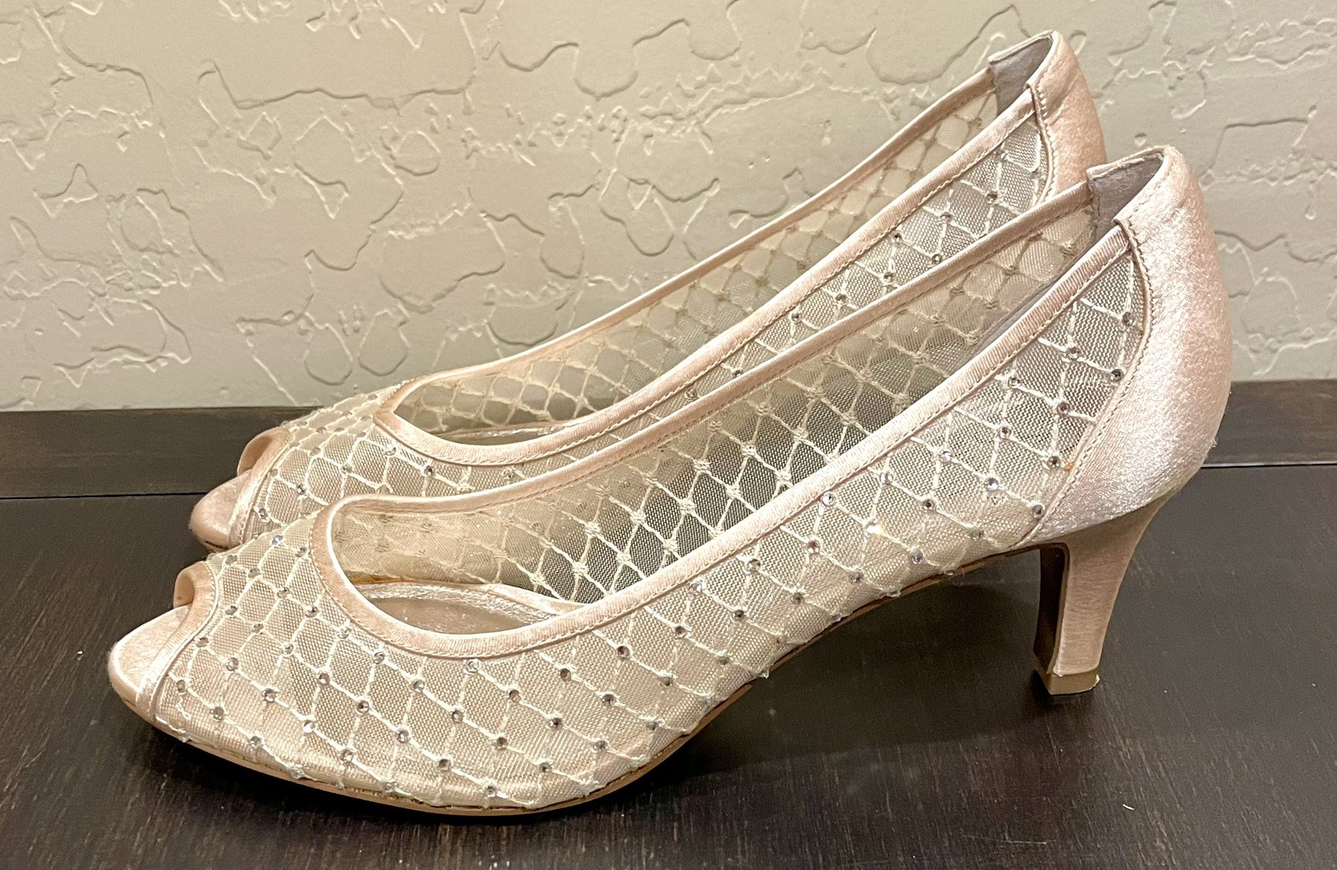 Beautiful Pair of Womens Adrianna Papell Sparkly Gold Tan Peep Toe Heels