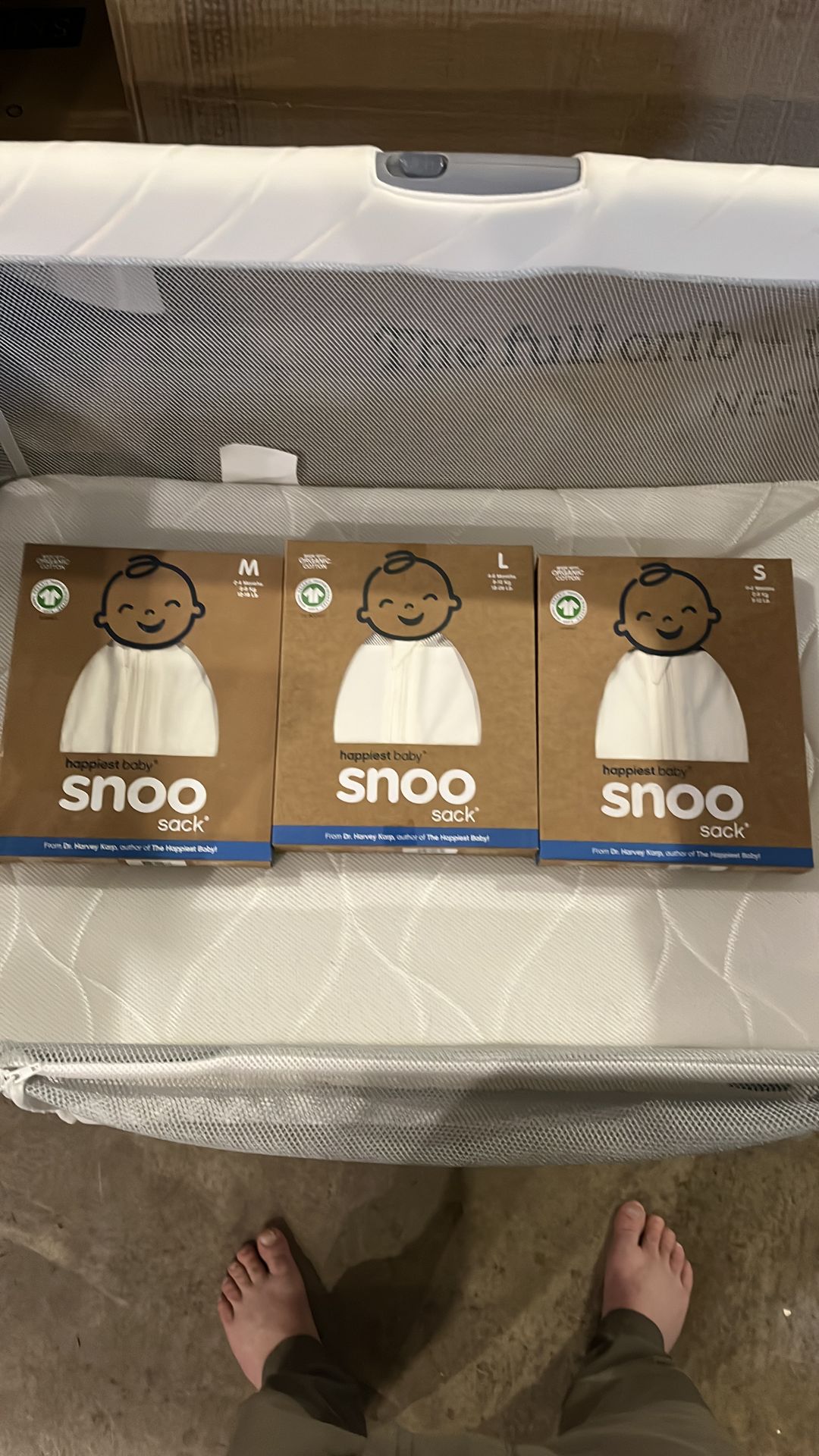 Infant sleep sacks for the Snoo bassinet. Three sizes. Priced individually.