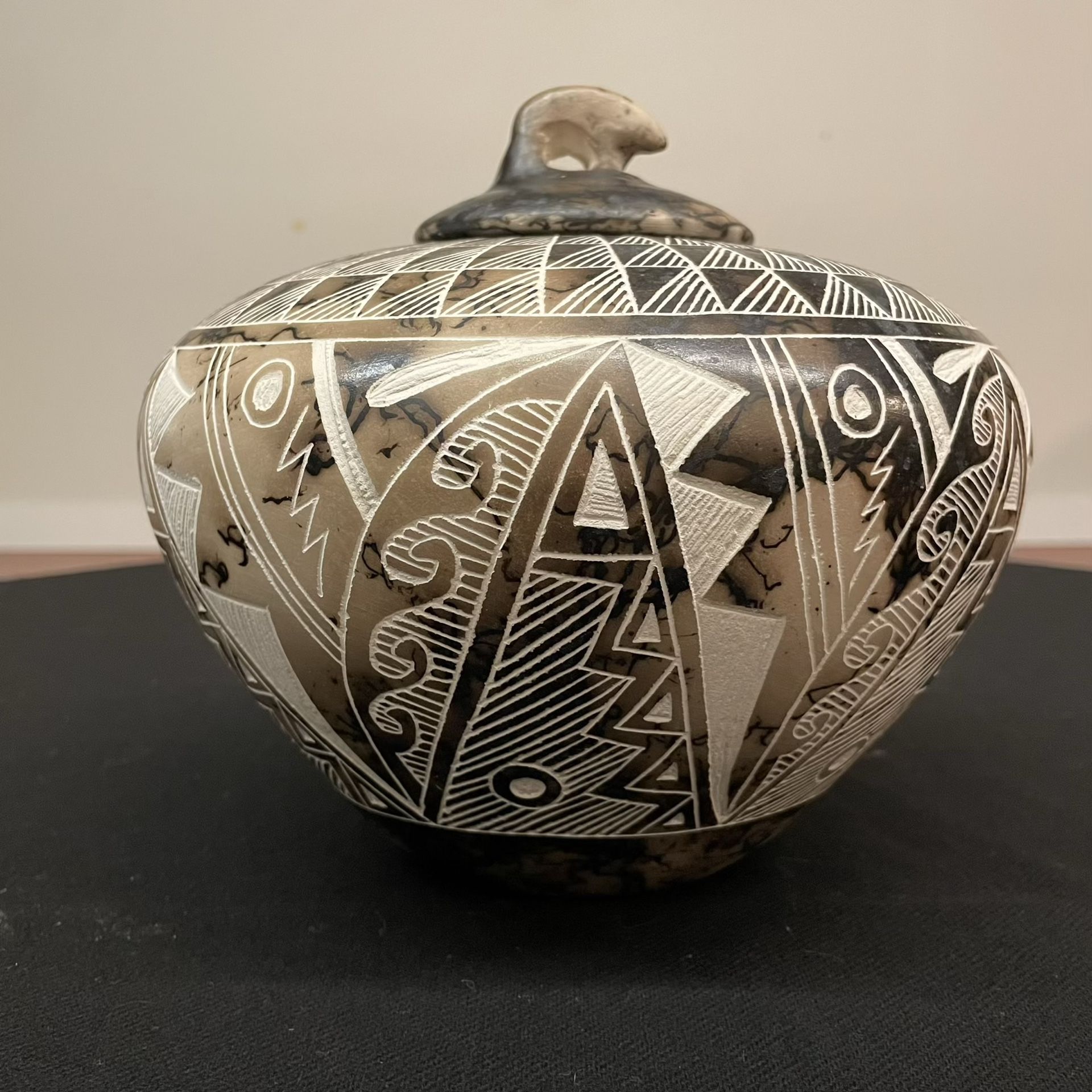 Native American Geometric Pottery Lidded Jar - Many More Items In Stock!