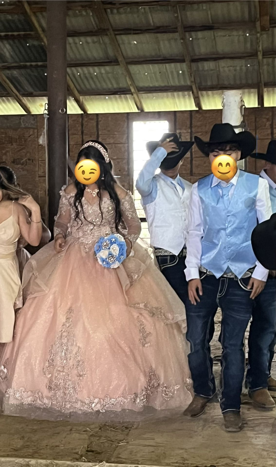 $500 rose gold quinceanera dress only worn once. And for only two hours, the rest was a surprise dress.