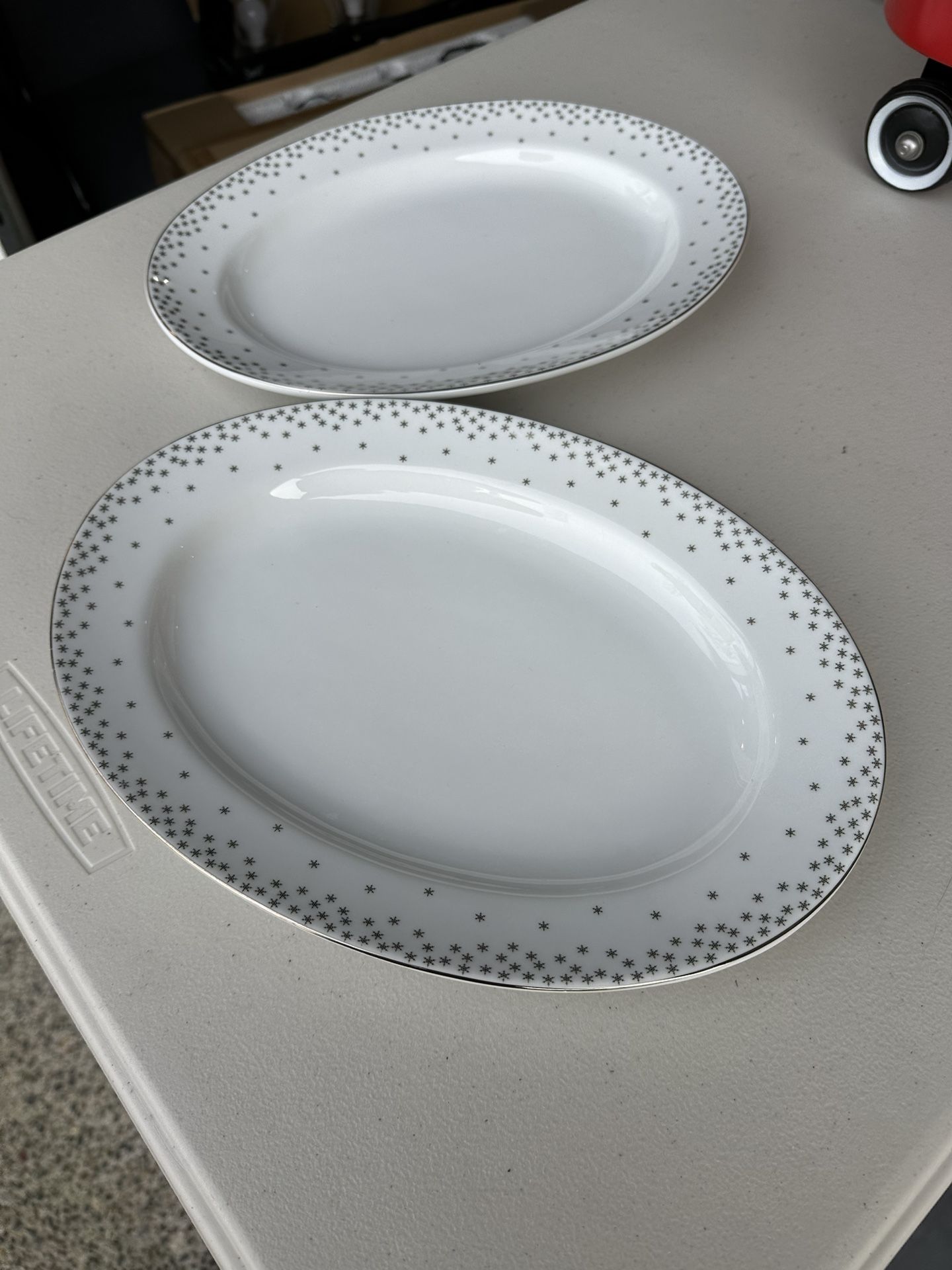 Two porcelain serving dishes with silver star design (package)