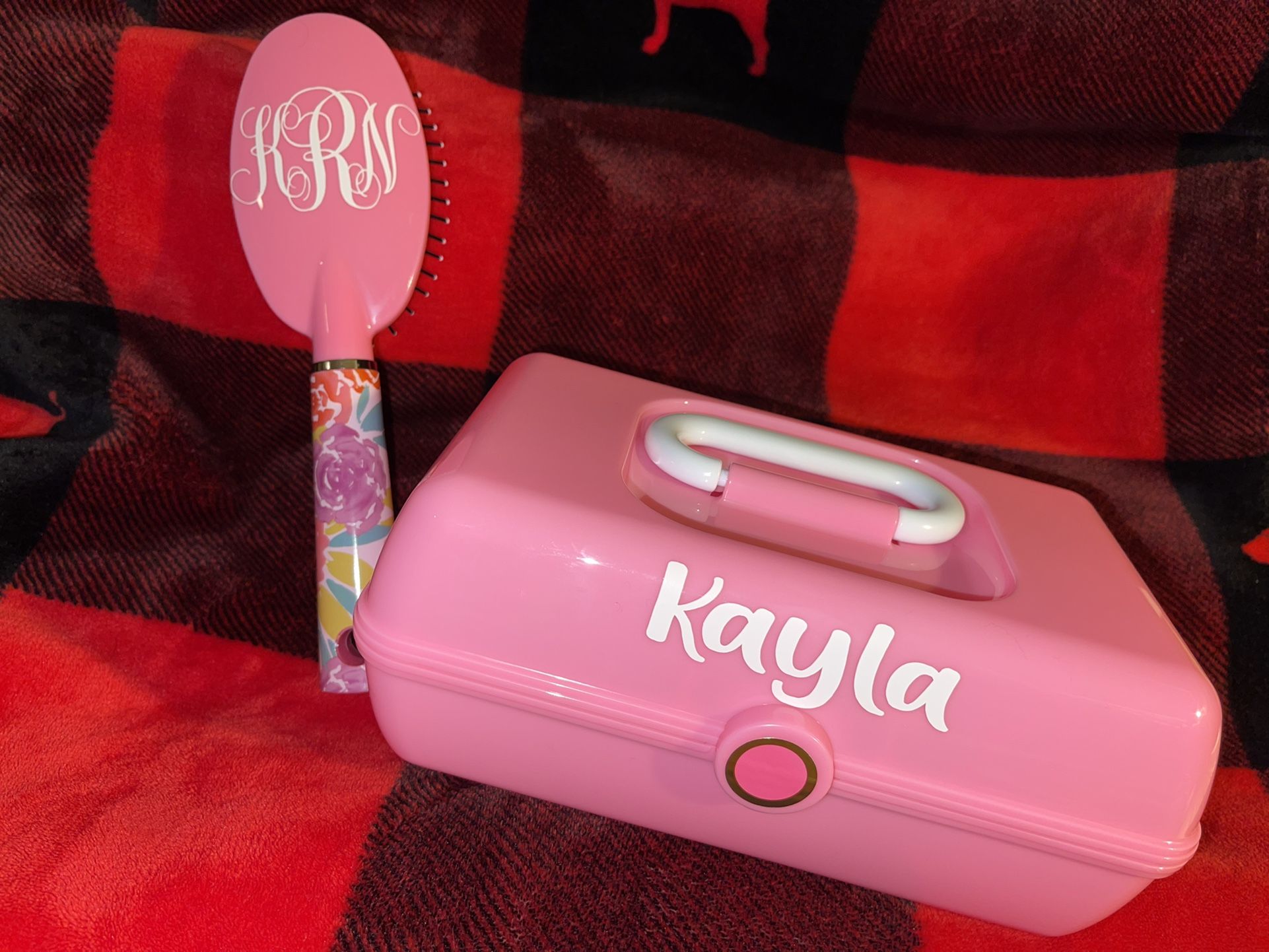 *LIMITED STOCK AVAILABLE* I currently only have (please msg me with color availability): 2 blue 2 pink 1 purple This is for a makeup box and brush customized with your name (different vinyl colors available for name). Makes a great gift for younger girls. $15.00 each **Since this item is customized I do require payment upfront either via Venmo or Zelle**