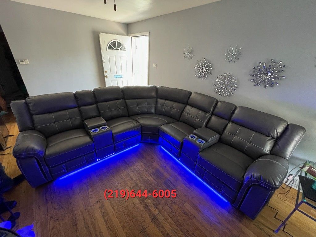 DARK GREY BRAND NEW POWER RECLINING SECTIONAL WITH LED LIGHTS SAME DAY DELIVERY